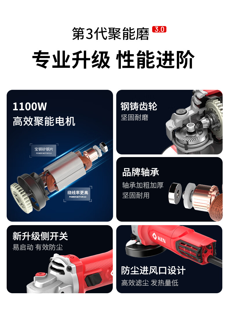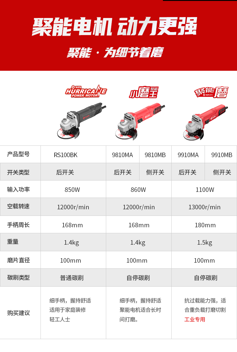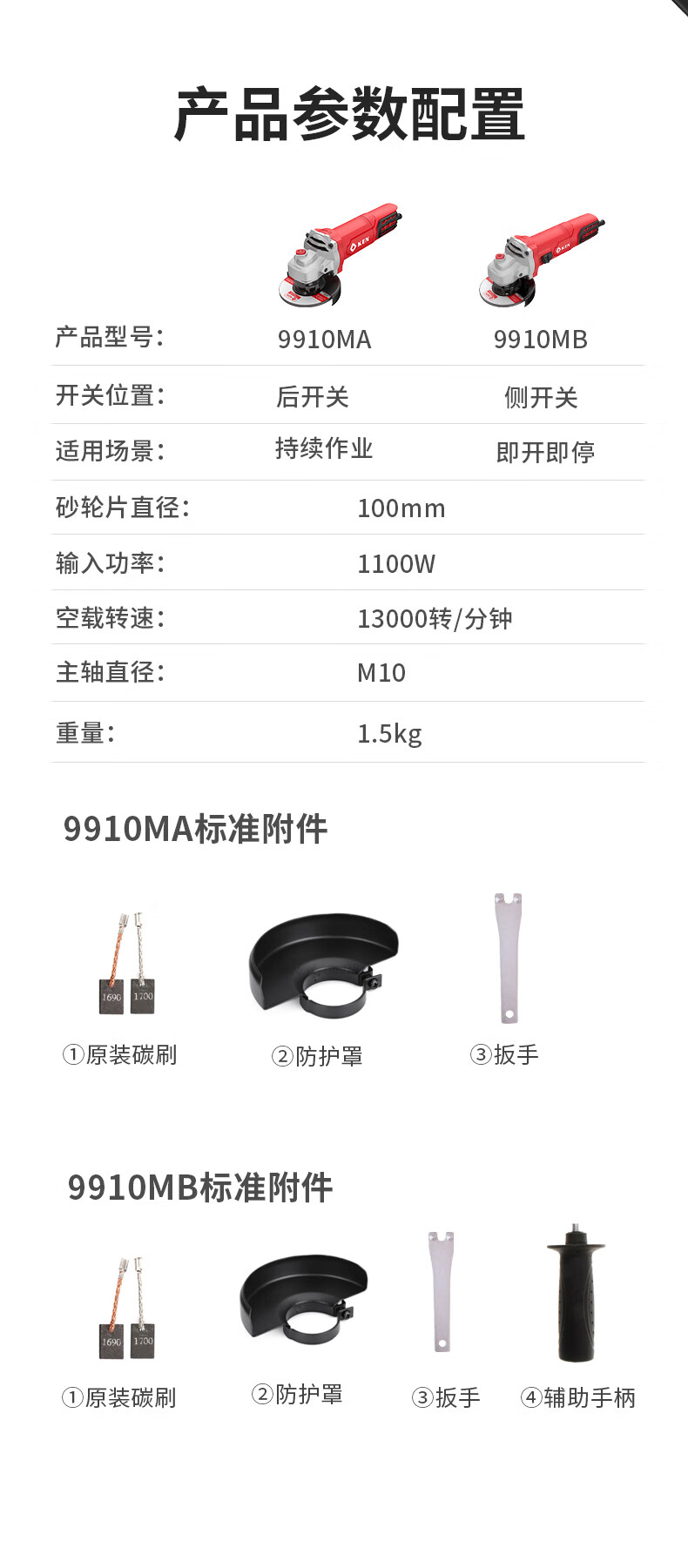 Ruiqi (KEN) angle grinder 9910MA hand grinder polisher grinder cutting machine 1100W grinder household power tools