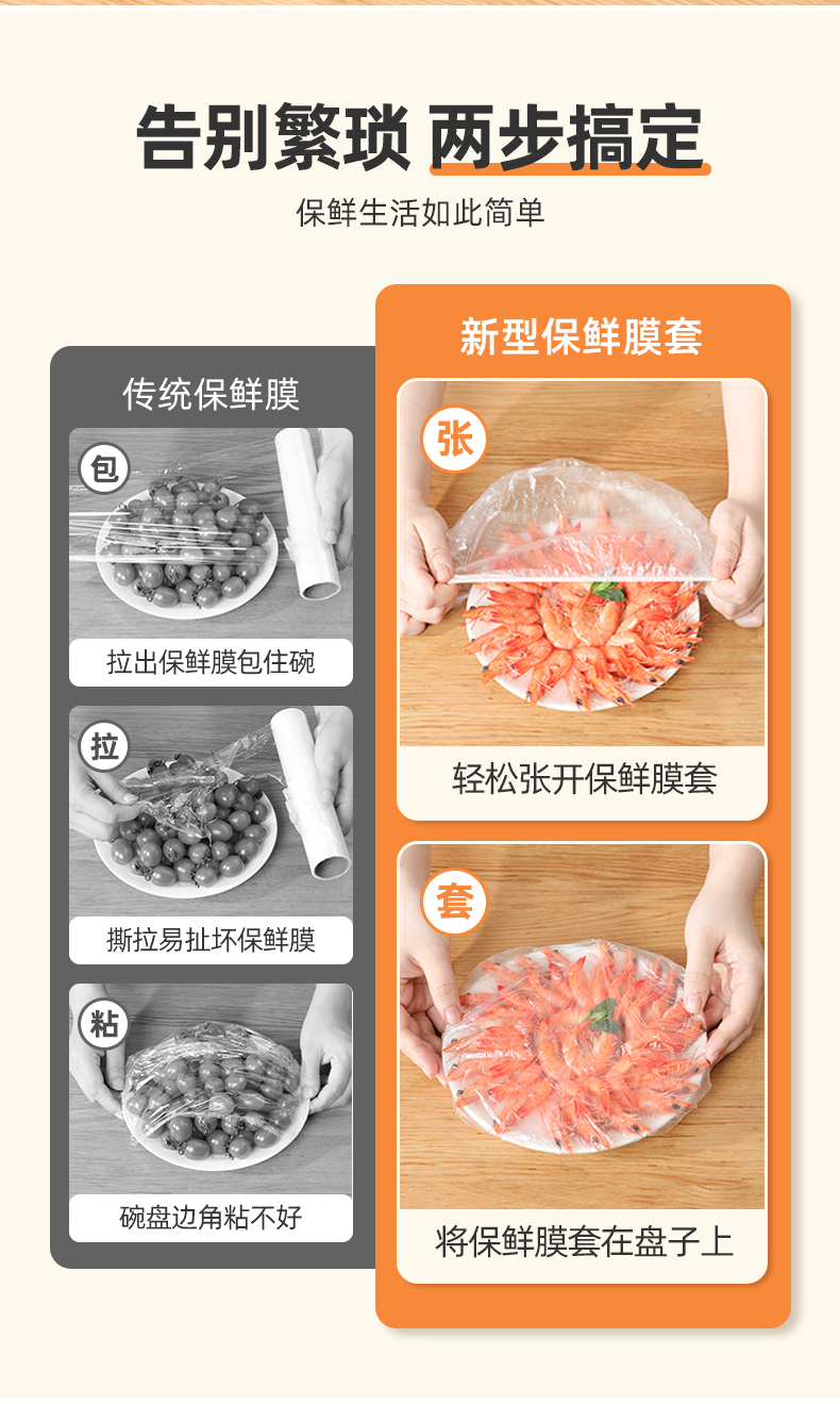 Jinghui Si Chuang cling film cover 300 elastic mouth size universal food grade household disposable cling film cover bowl cover JH6531