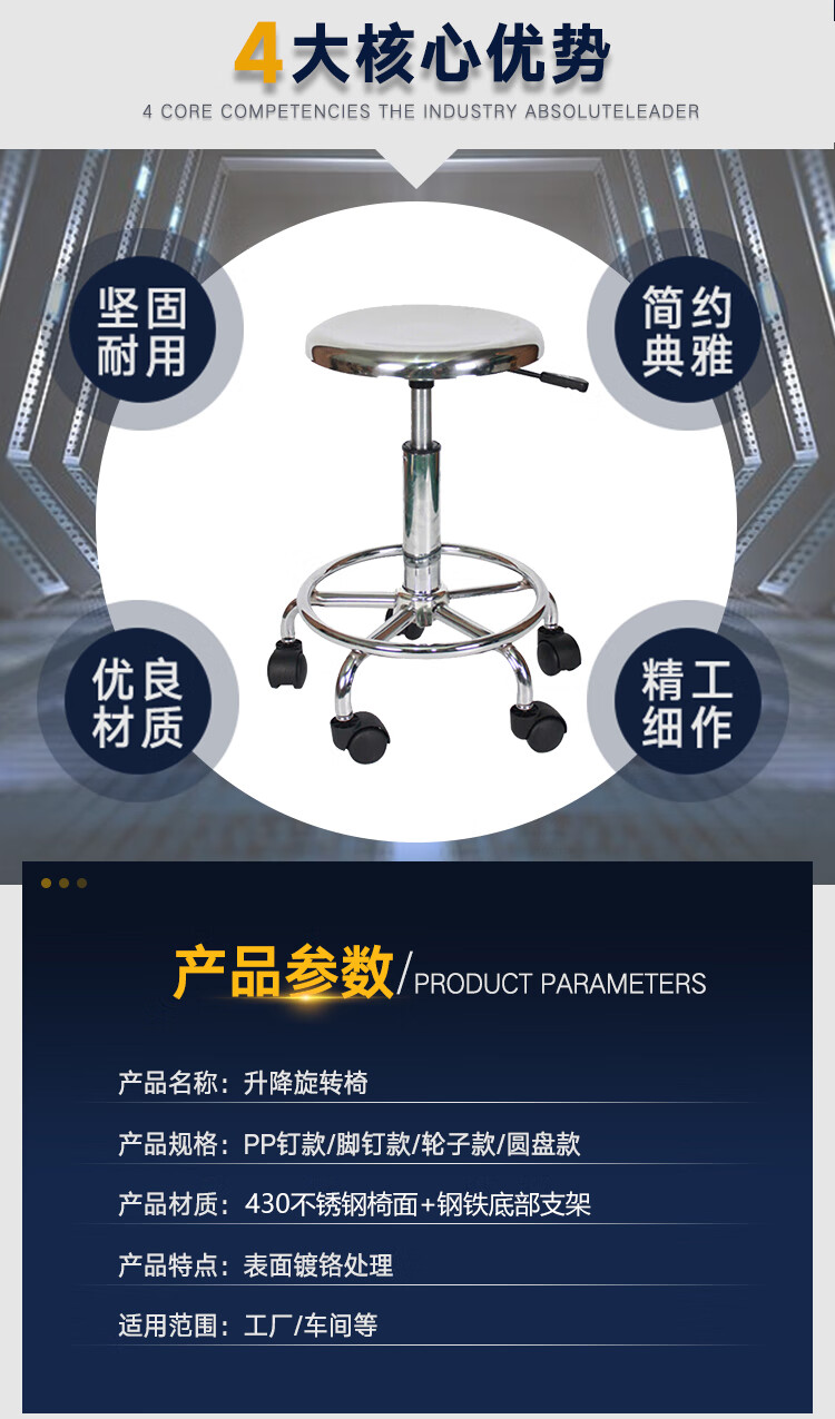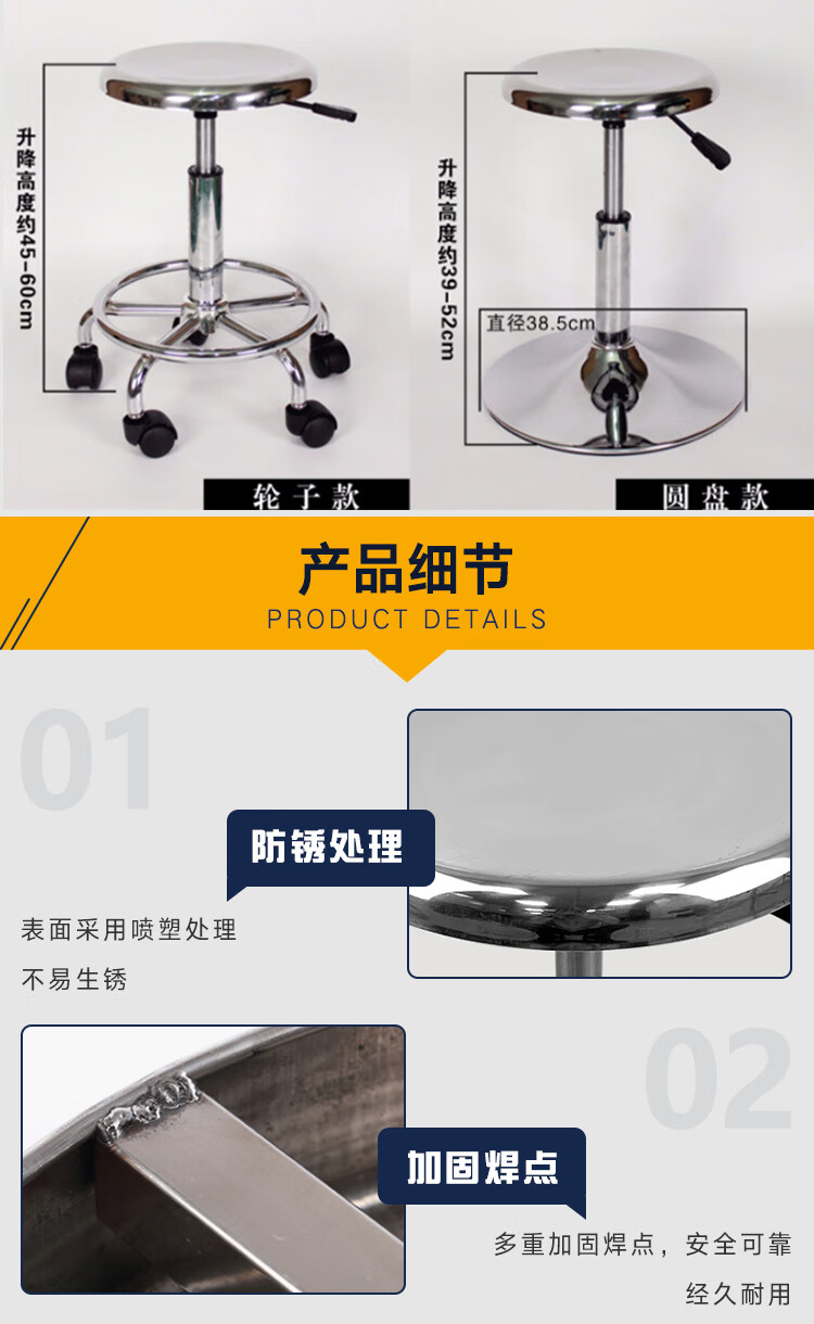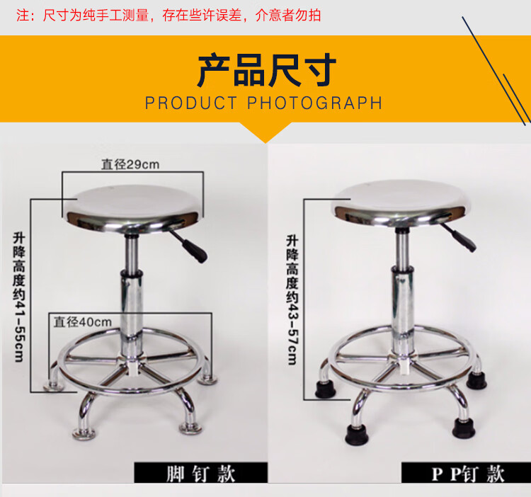 Jin Shiluo K6208 Workshop Stool Stainless Steel Assembly Line Work Stool Round Lift Rotating Chair Hospital Work Station Foot Nail Type Needs to be Installed by Yourself Customized