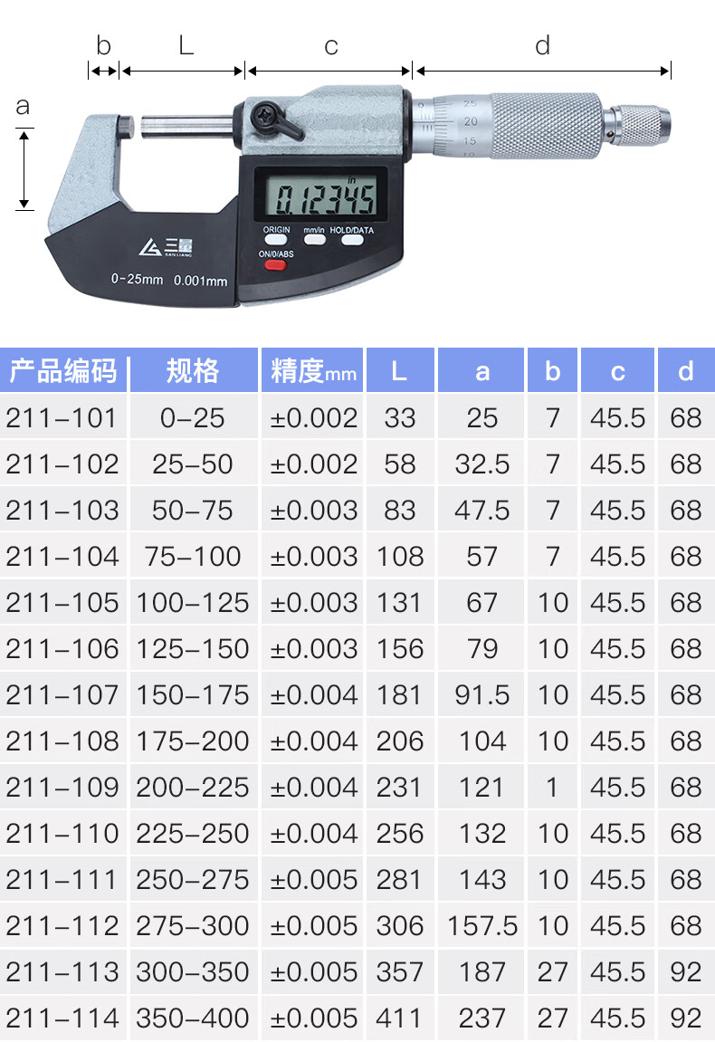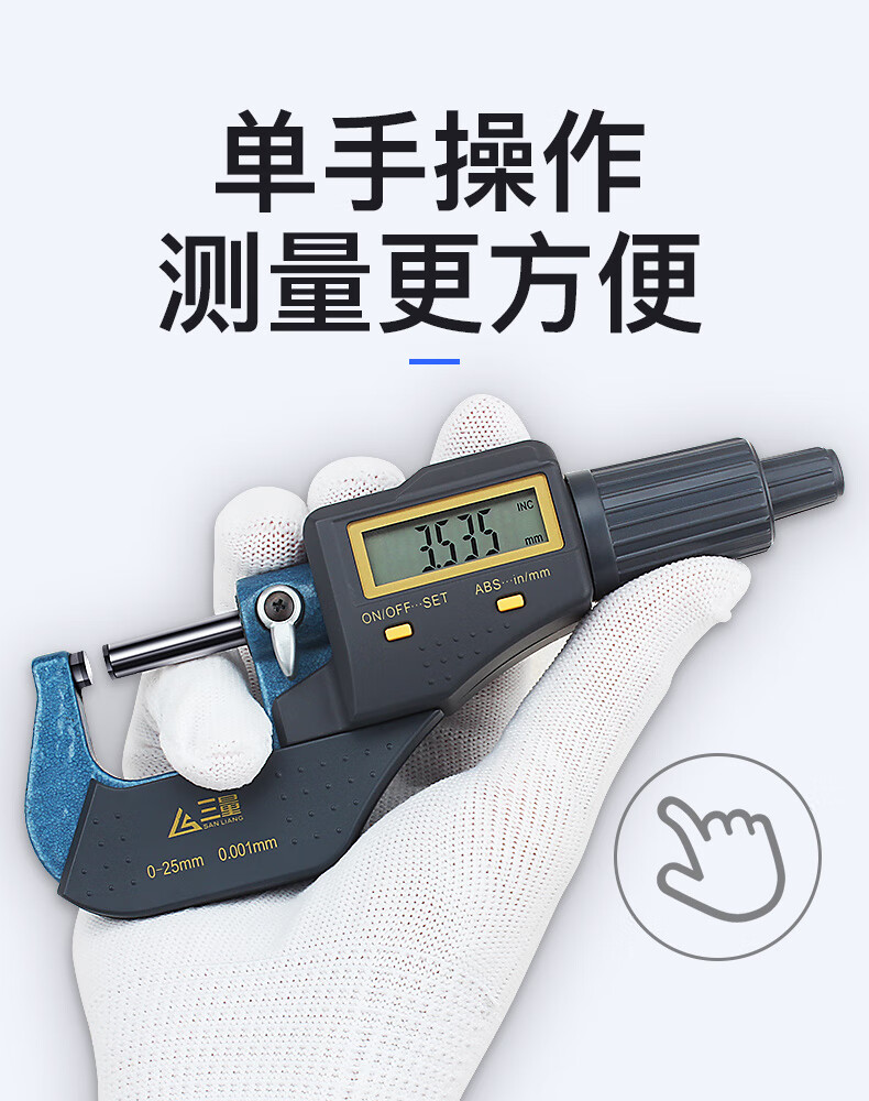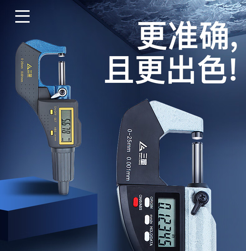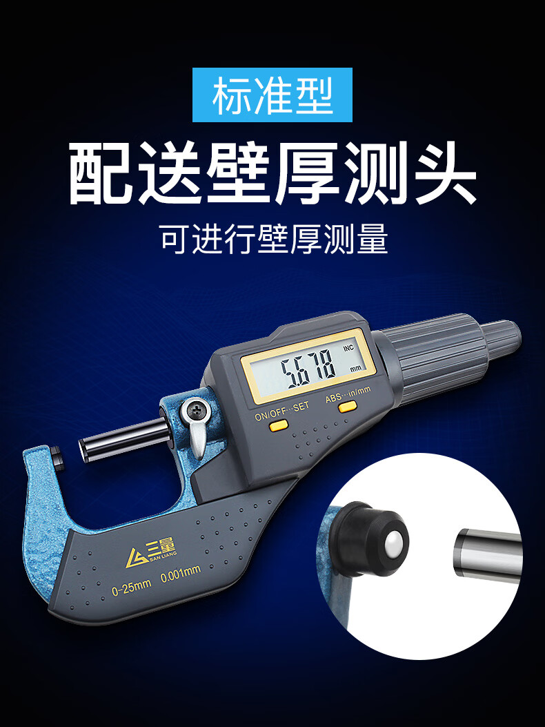 Three-quantity high-precision 0.001 digital display outer diameter micrometer 0-25mm electronic spiral micrometer instrument caliper JDE04 waterproof type 0-25mm