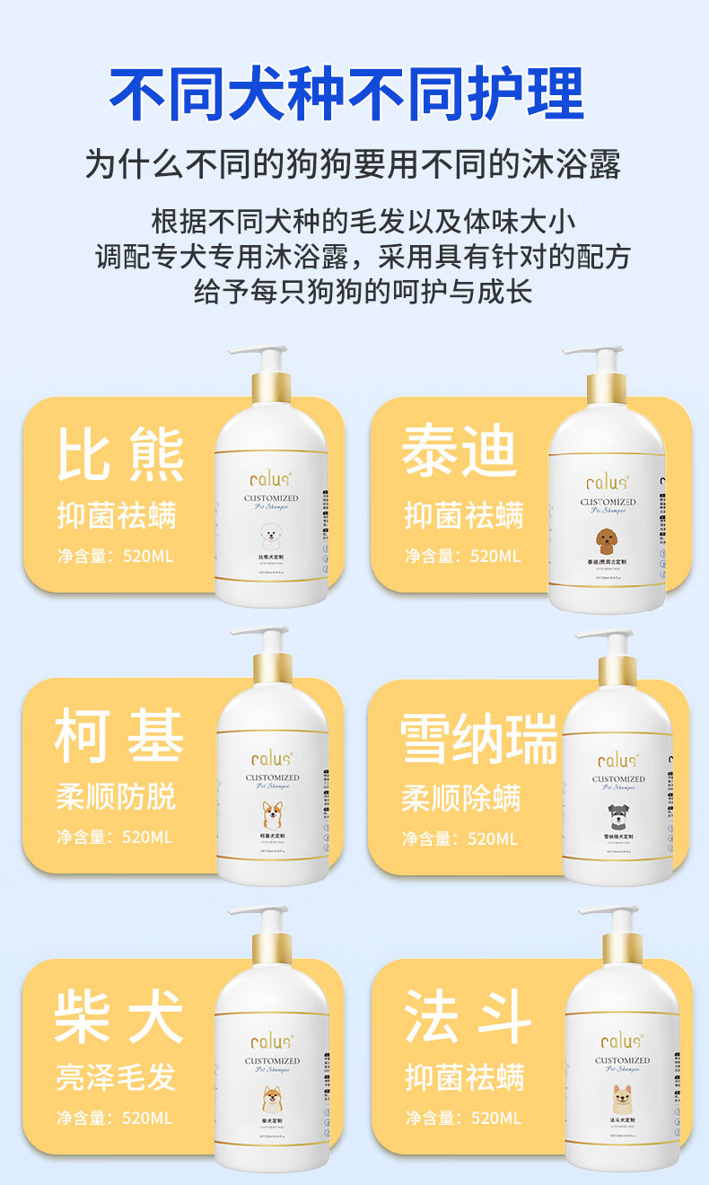 Calus Pet Dog Shower Gel Adult Puppy Universal Deodorant Bath Shampoo Specially Customized for Pomeranians 520ml