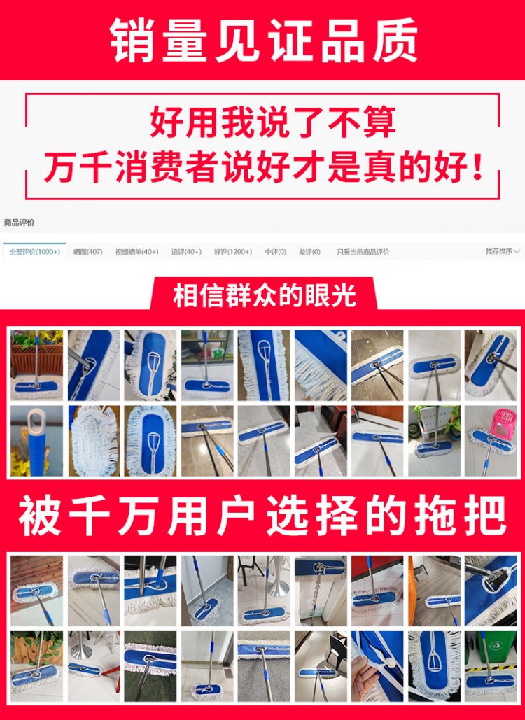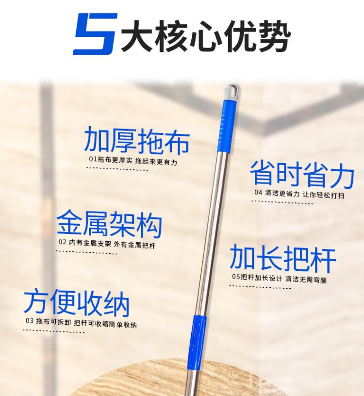 Mandelai 60CM dust push flat mop row mop office housekeeping factory workshop shopping mall cleaning water absorption decontamination removable single pack