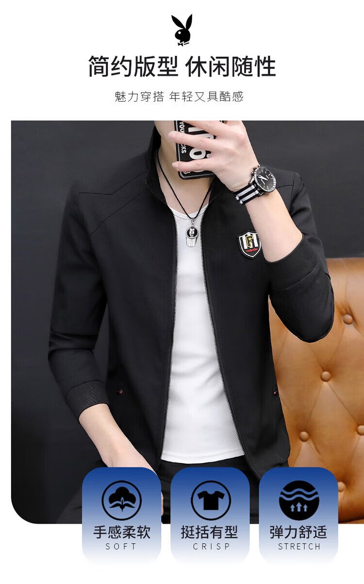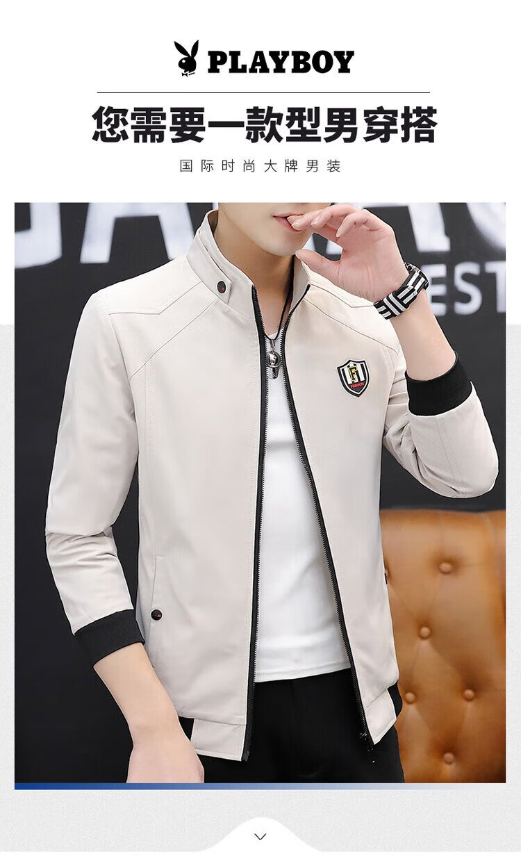 Playboy (PLAYBOY) jacket men's coat men's autumn and winter Korean style trendy men's business casual stand-up collar solid color top