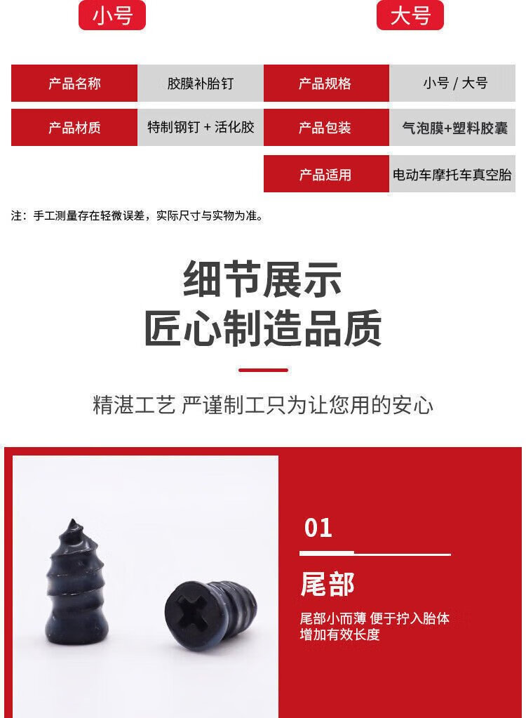 Beiteng vacuum tire special rubber nail repair artifact tire universal non-destructive quick tire repair nail 5 large + 5 small