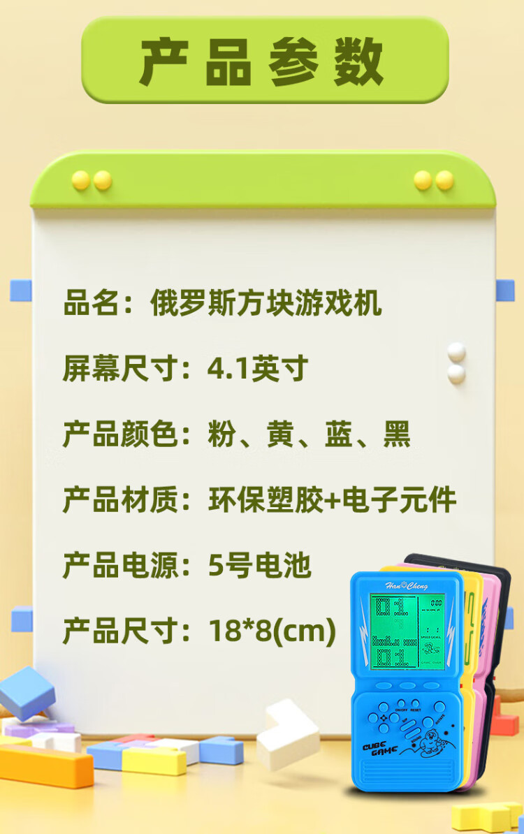 VMA (VMA) game console, classic nostalgic Tetris machine game handheld children's handheld game console - blue 4.1-inch backlit large screen