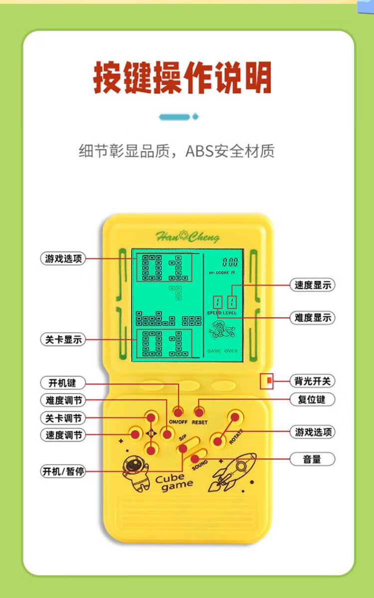 VMA (VMA) game console, classic nostalgic Tetris game handheld game console, children's handheld game console - black 4.1-inch backlit large screen