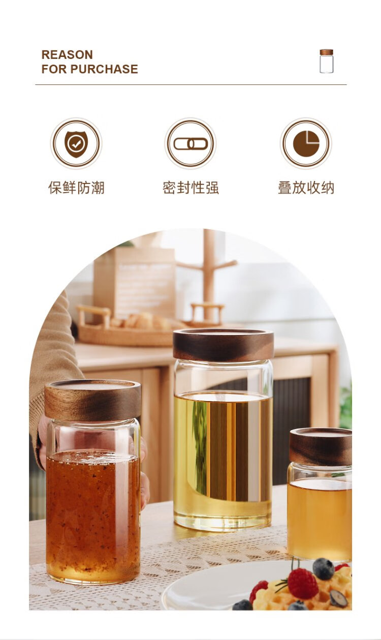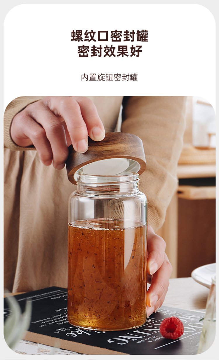 Genasi sealed jar glass bottle coffee jar tea jar honey jar candy snack kitchen dry goods storage jar grain storage storage jar 500ml