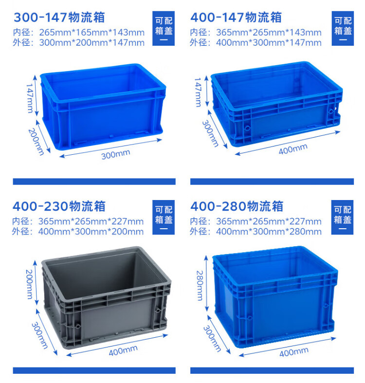 Xingyun European standard EU box auto parts turnover box 400*300*280mm plastic storage parts box thickened logistics box gray can be customized