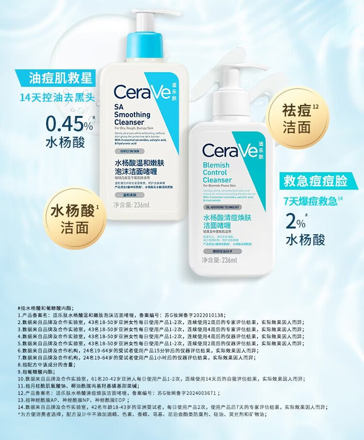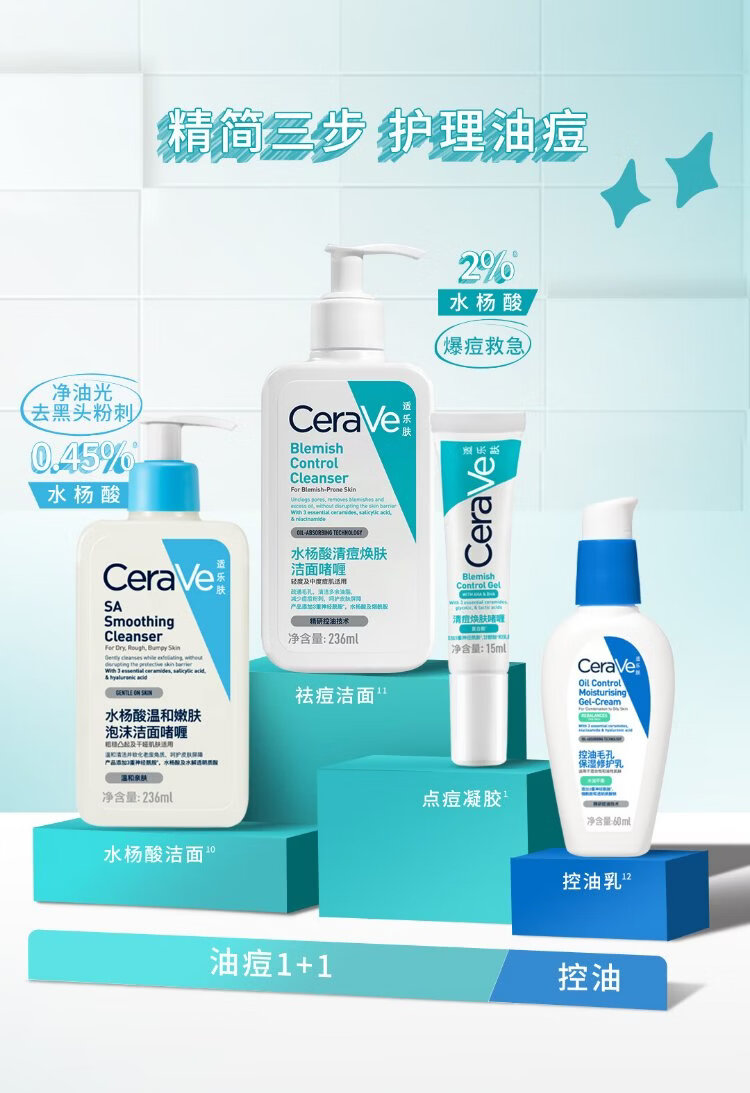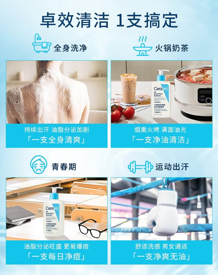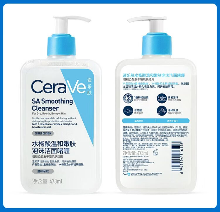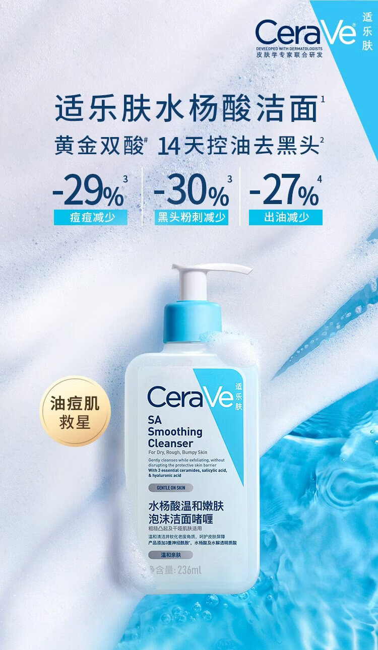 CeraVe oily acne skin savior salicylic acid facial cleanser 473ml (oil control, acne removal and blackhead removal gift for men and women)