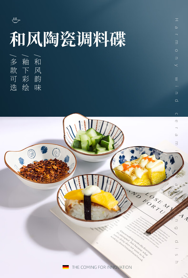 Newair condiment dishes, 3-pack ceramic tableware, condiments, vinegar dishes, dipping sauces, bone dishes, snack dishes, small dishes