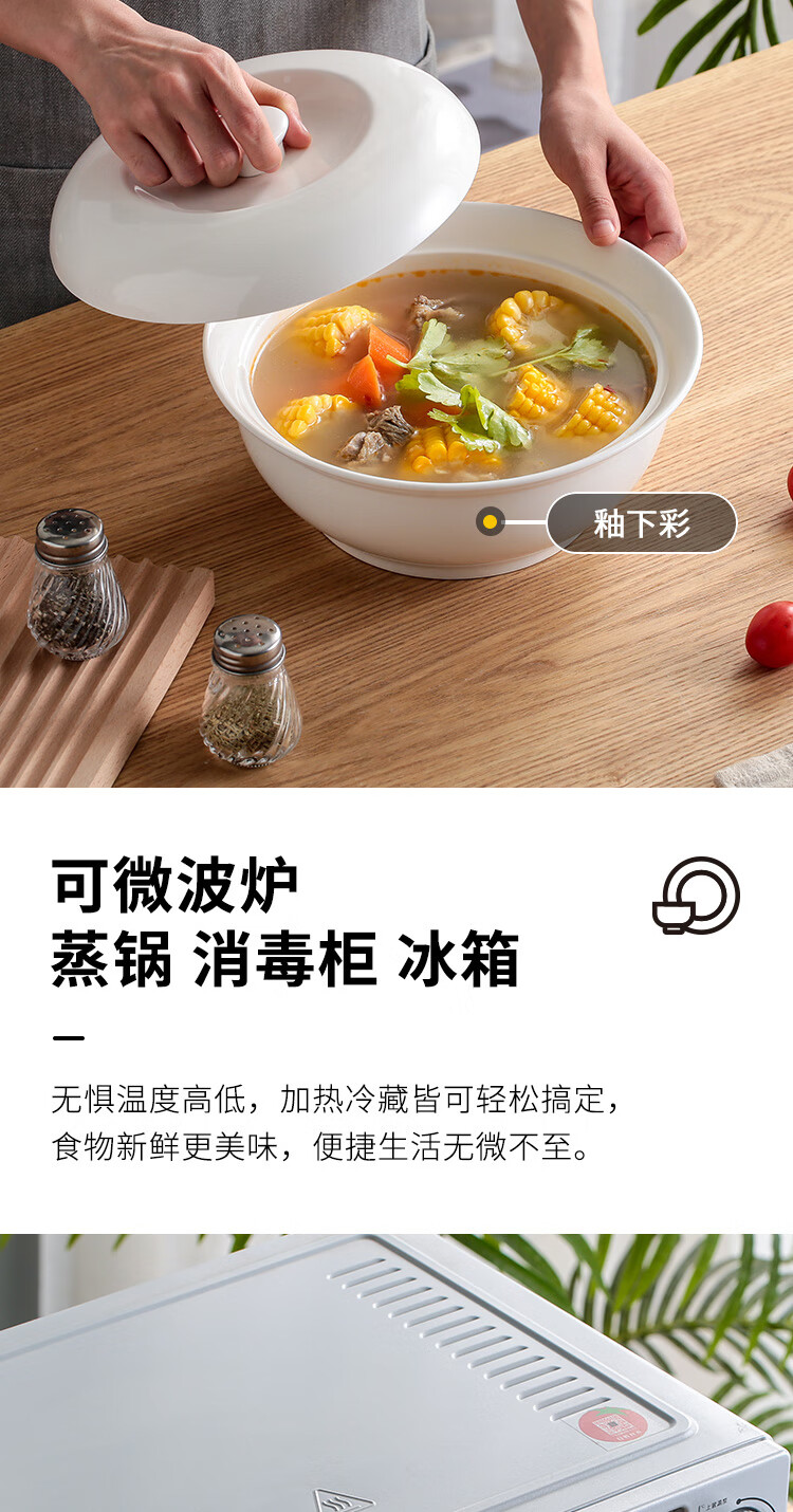 Jie Yajie ceramic soup bowl large household soup pot Chinese style underglaze color 9-inch pot with spoon