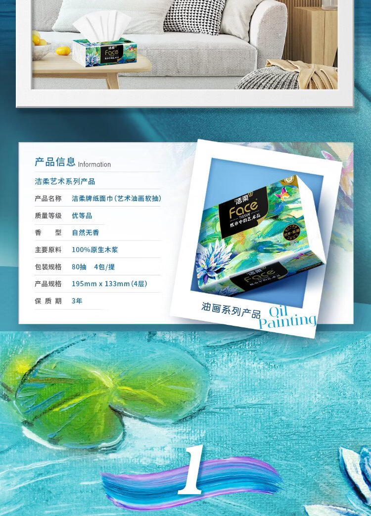 Jierou tissue art oil painting face thickened 4 layers 80 sheets * 4 packs campus essential facial tissue paper towels