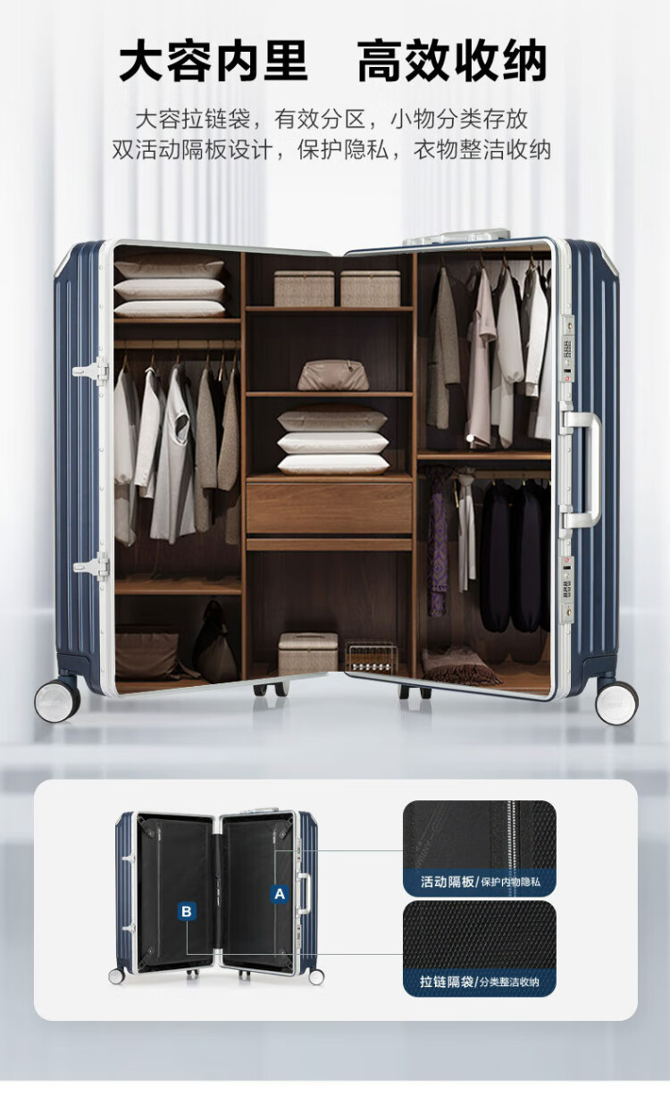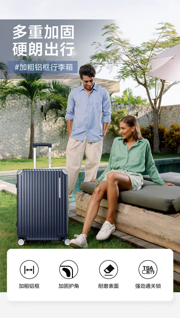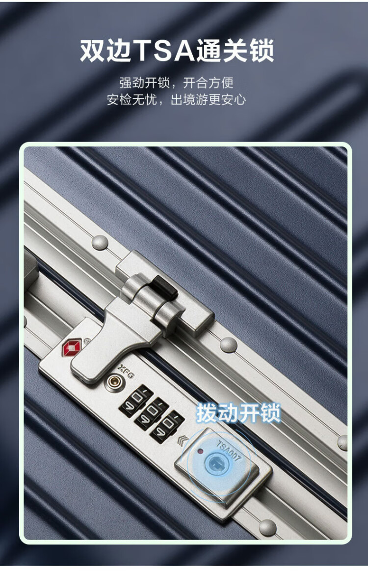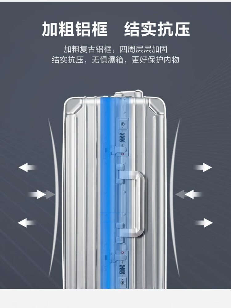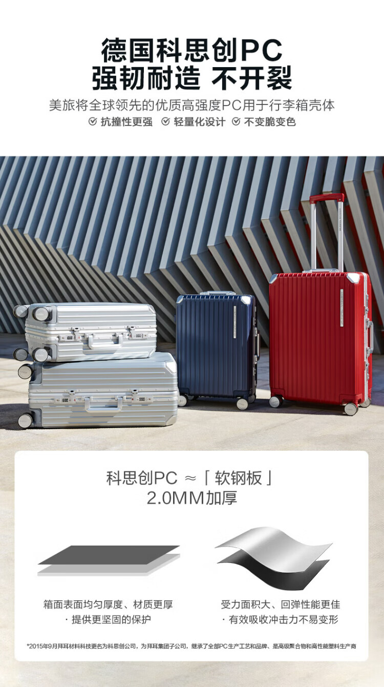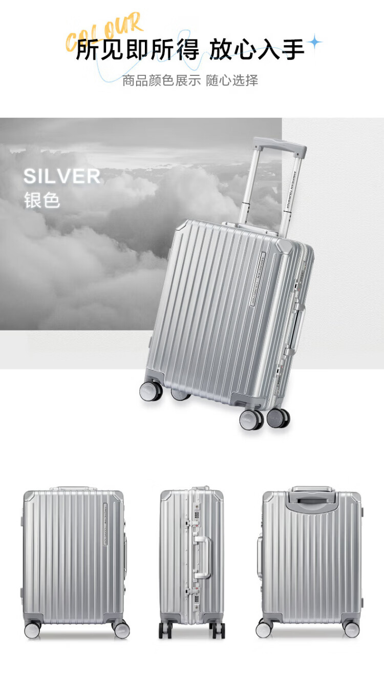 Mei travel suitcase 28-inch trolley case large capacity suitcase PC material frame box NH7 password box silver