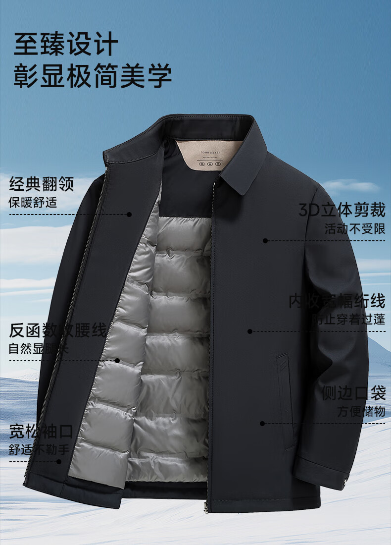 Romon 90 duck down jacket men's winter executive lapel thickened jacket business casual dad work jacket