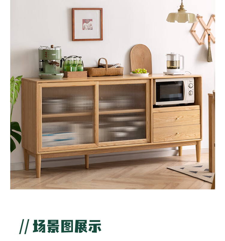 Genji Muyu solid wood sideboard integrated high cabinet tea cabinet multi-functional storage cabinet simple cupboard home wine cabinet