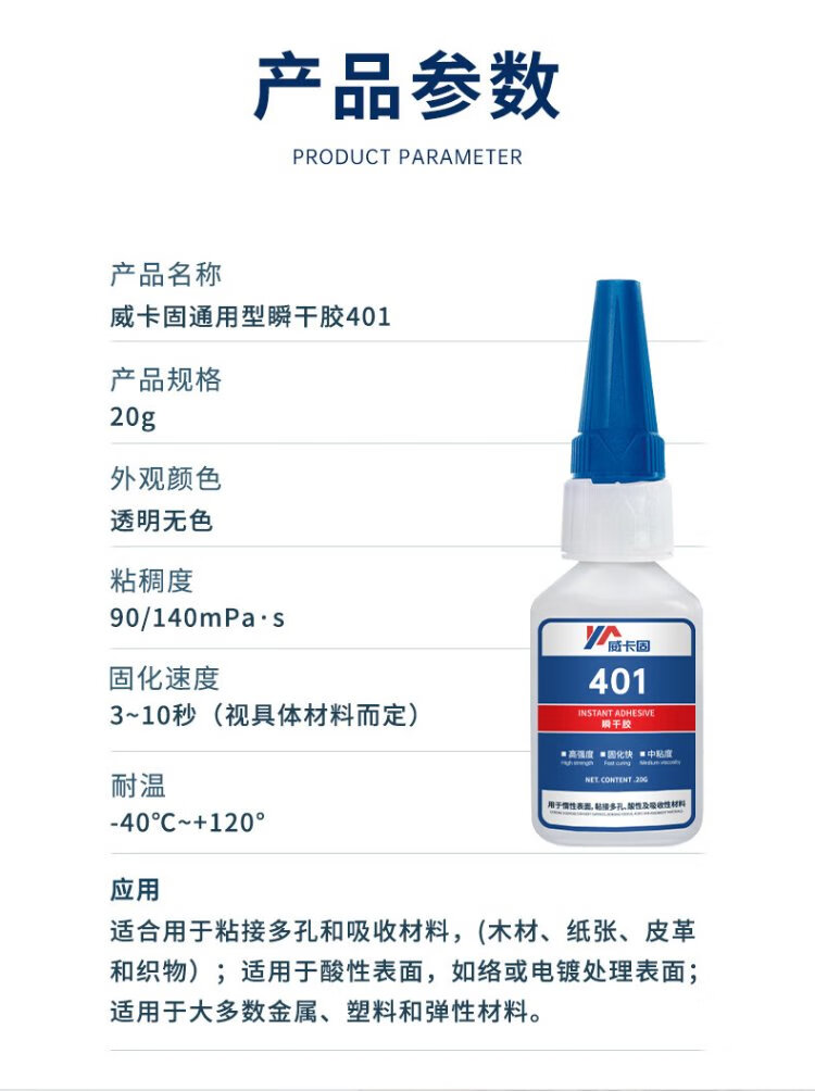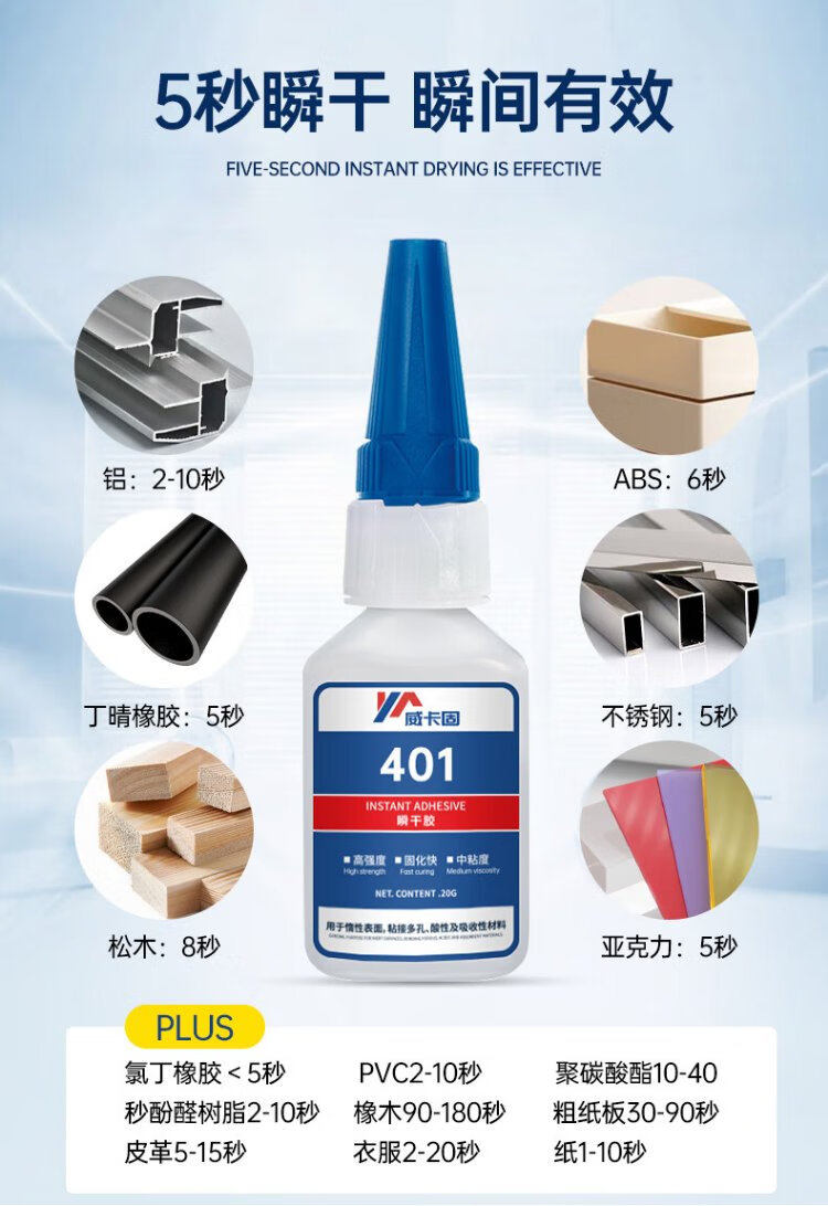 VIKAGU 401 PVC strong glue general-purpose instant glue fast metal plastic paper wood quick-drying glue transparent 20g 1 stick