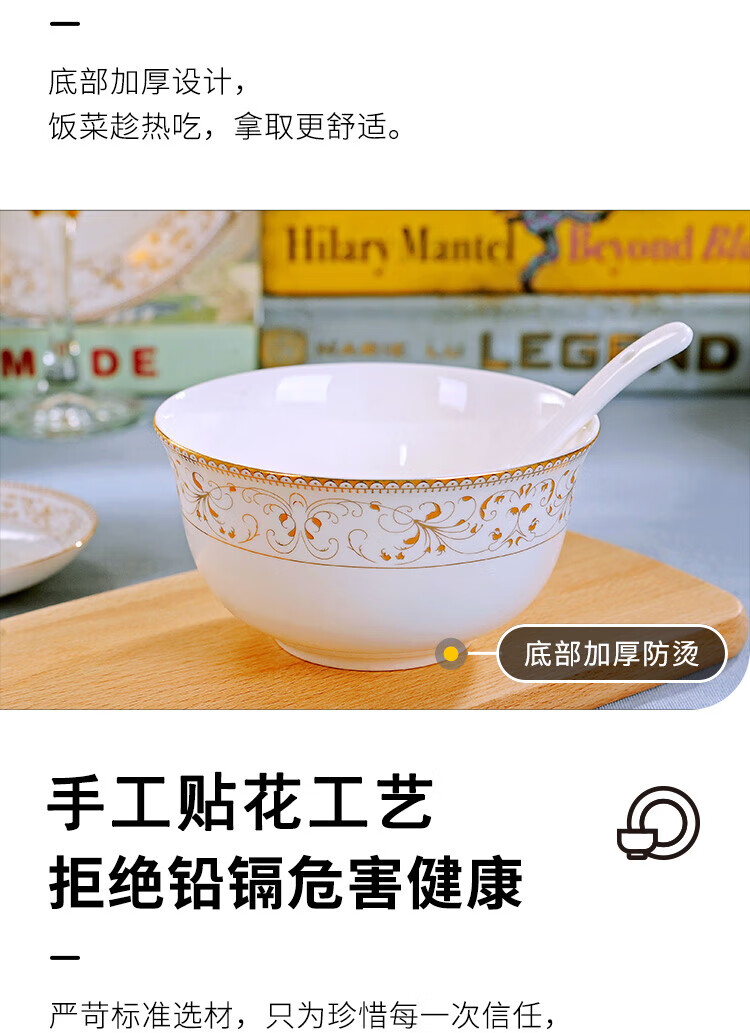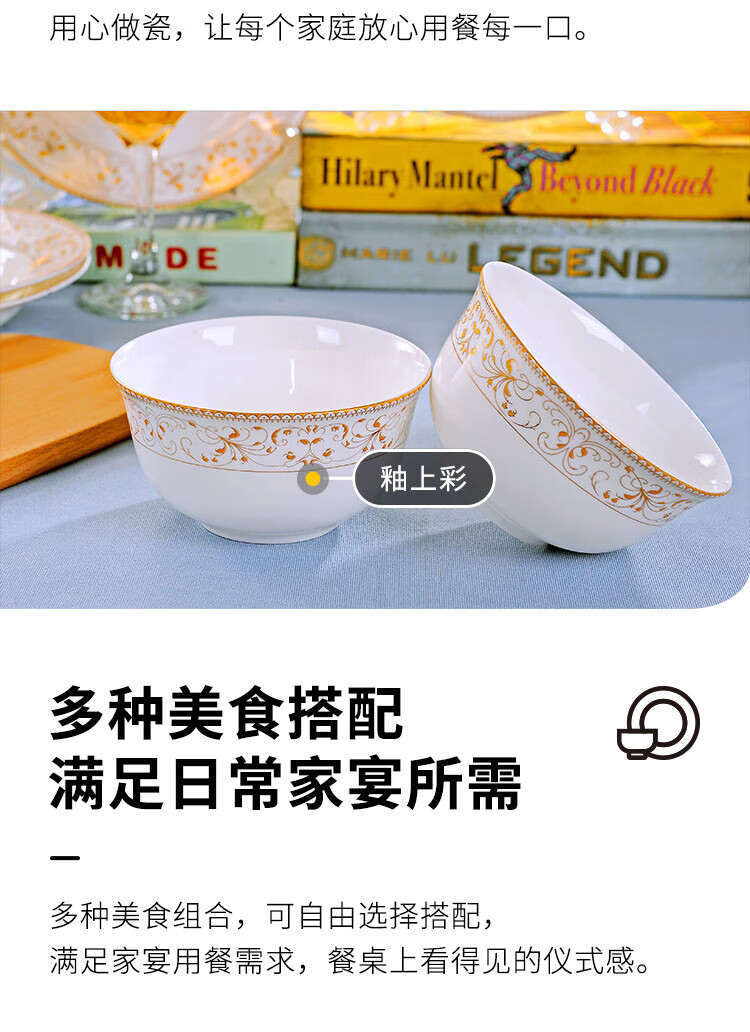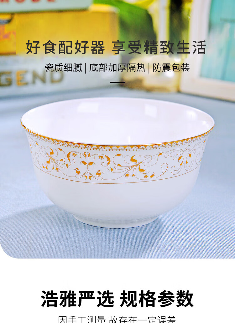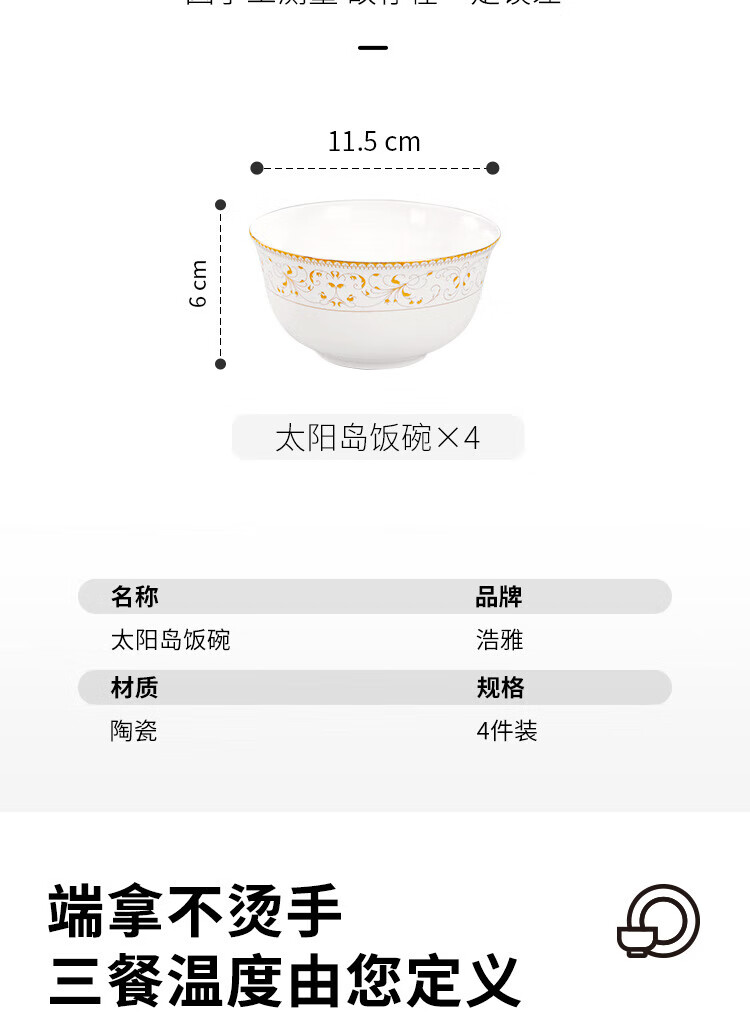 Haoya Jingdezhen ceramic tableware set household rice bowl small soup bowl European style Sun Island 4.5 inches 4 pack
