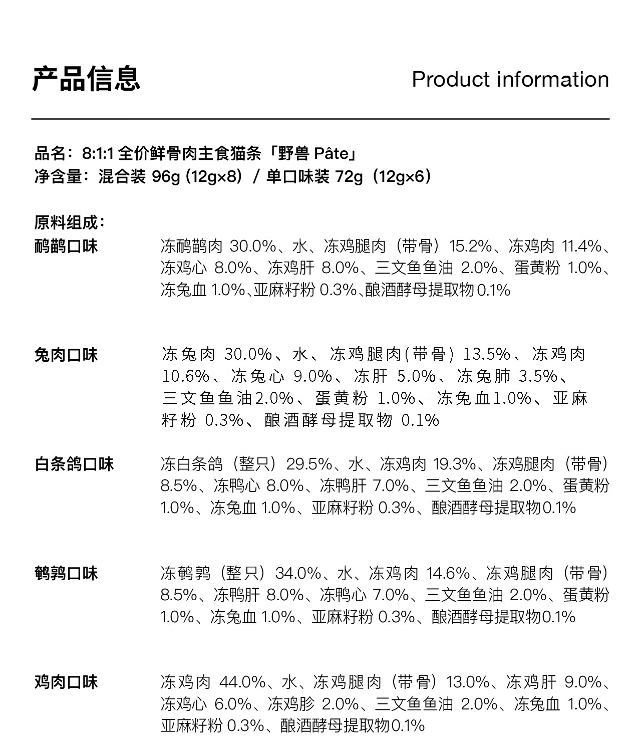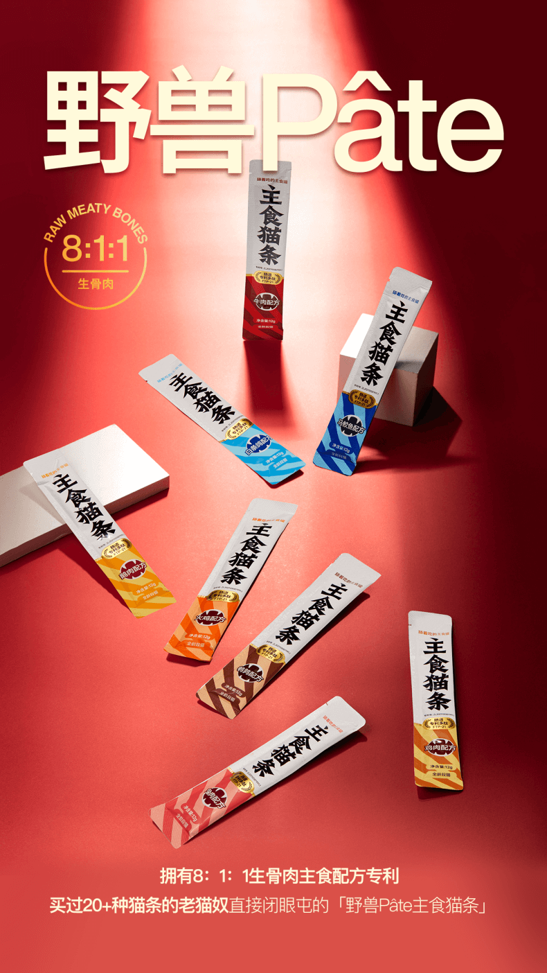 FURRYTAIL staple food cat strips, full price, fresh meat and bones, 12g*8 strips, cat snacks for weight gain, multi-flavor mixed pack, no food attractants