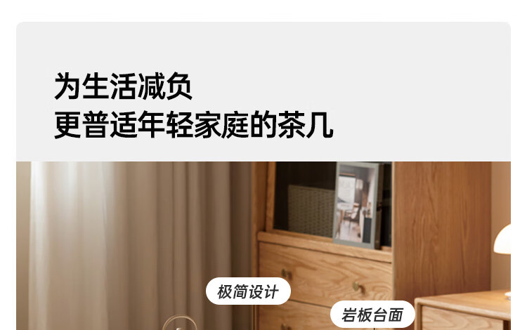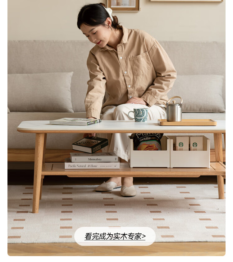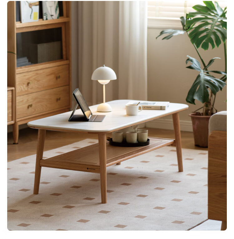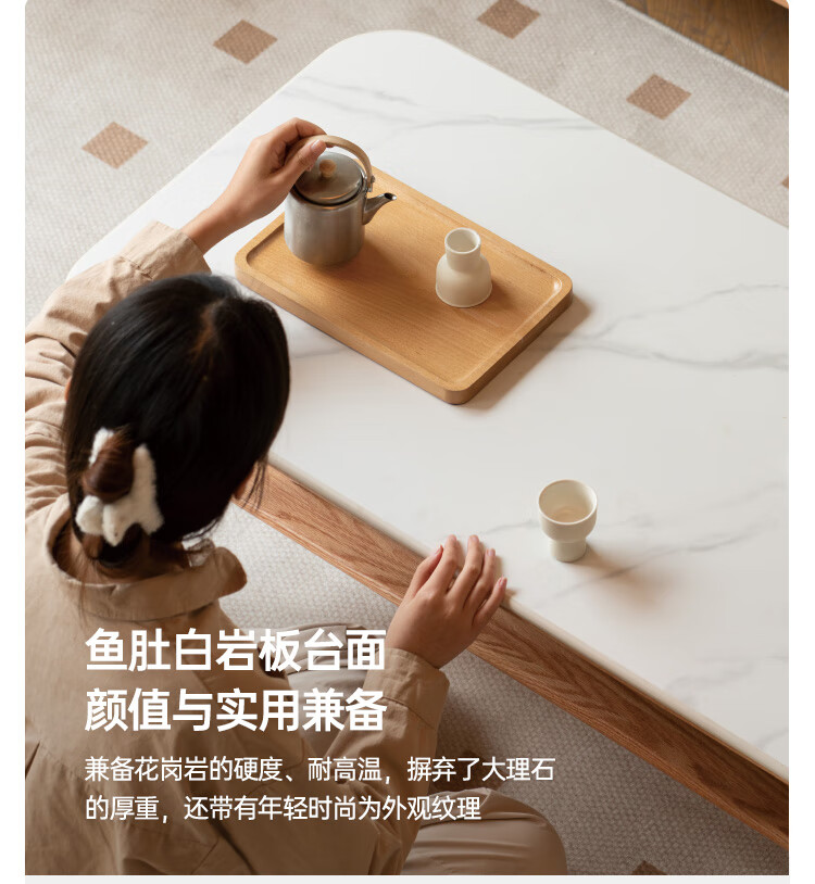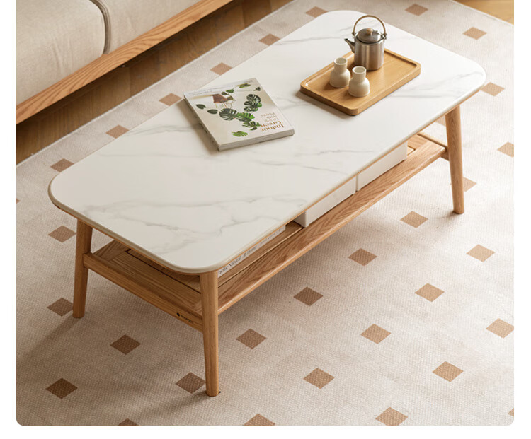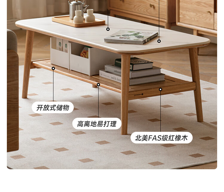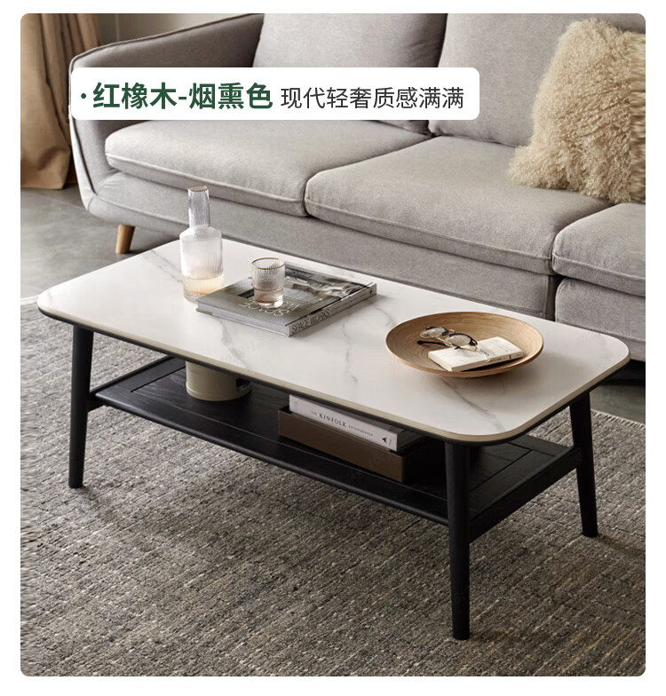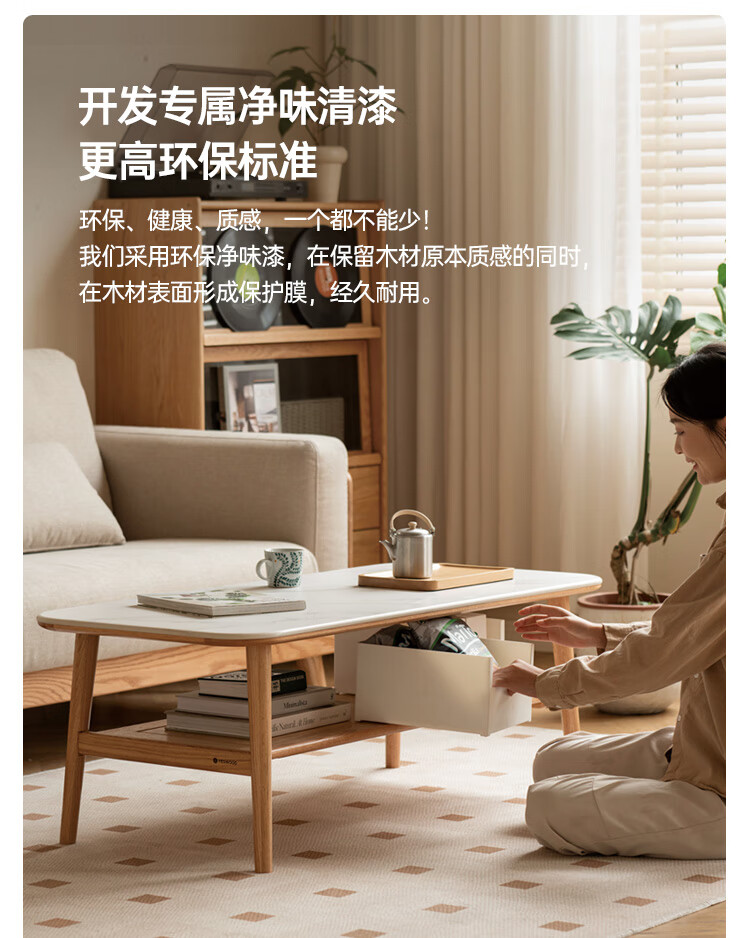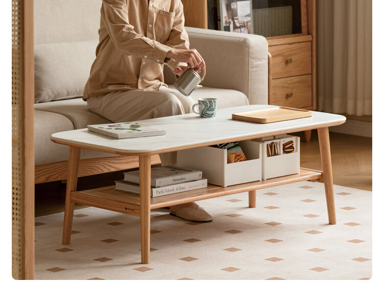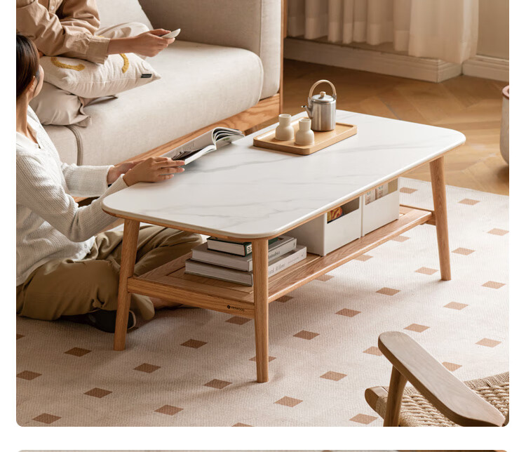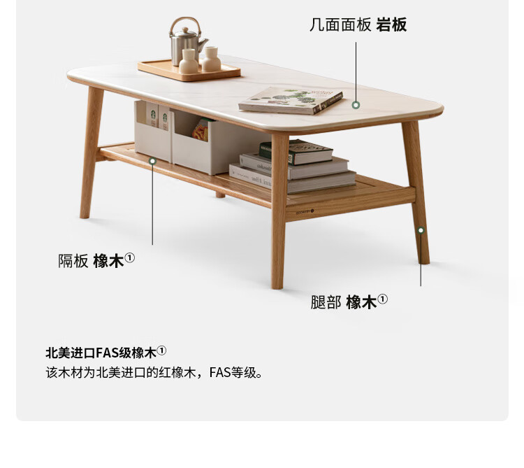 Genji Muyu solid wood slate coffee table modern simple oak tea table Nordic living room home small apartment tea table white slate 1 meter