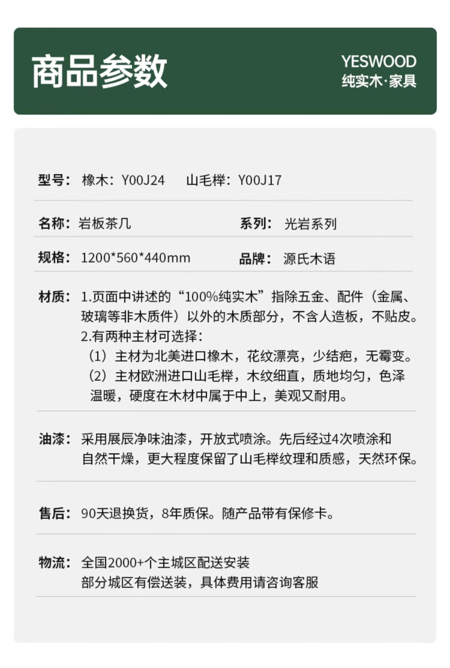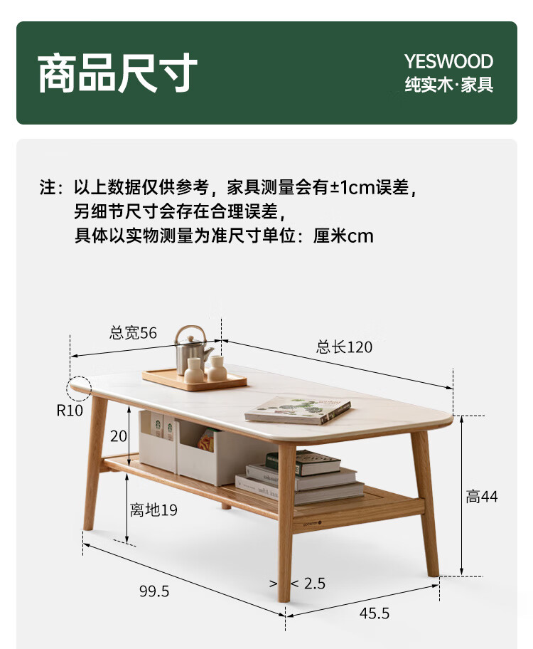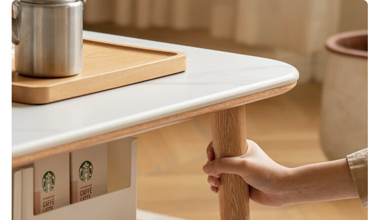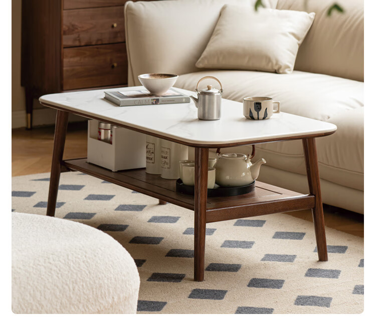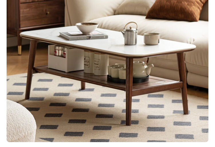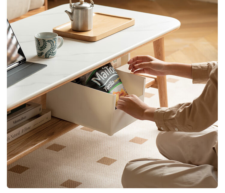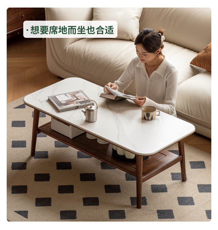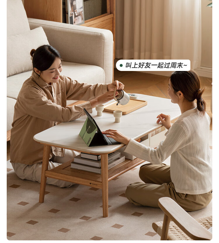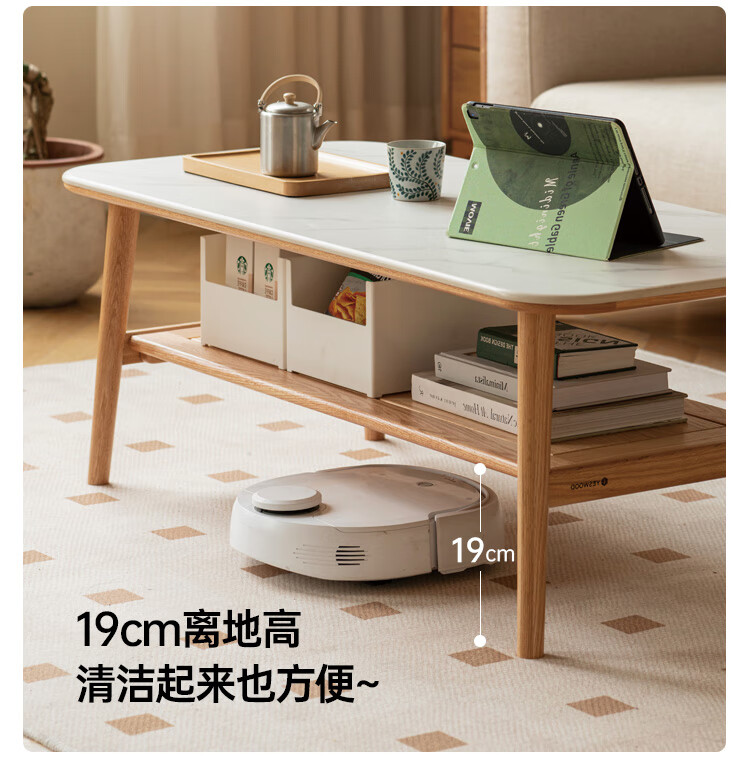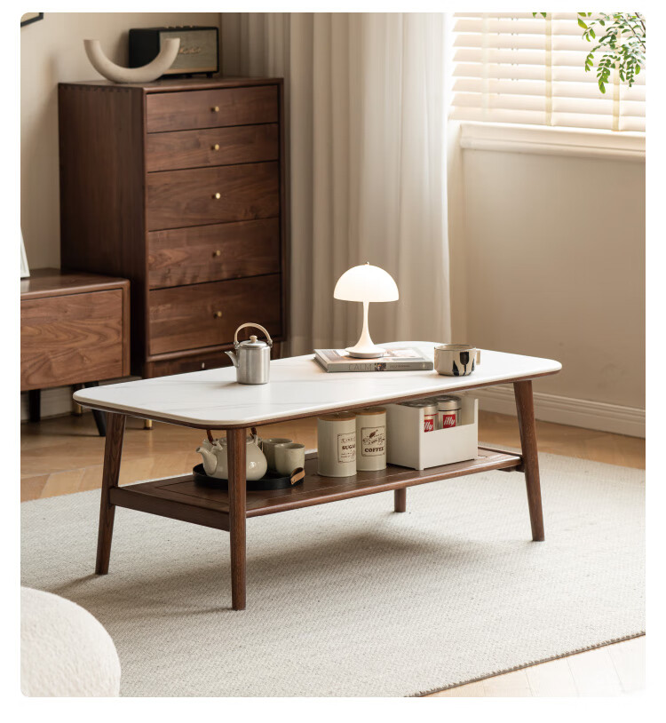 Genji Muyu solid wood slate coffee table modern simple oak tea table Nordic living room home small apartment tea table white slate 1 meter