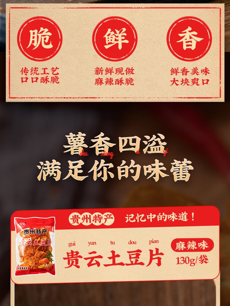Yunshan Half Guiyun Potato Chips 130g Guizhou Specialty Spicy Spicy Potato Chips Puffed Potato Chips Snacks