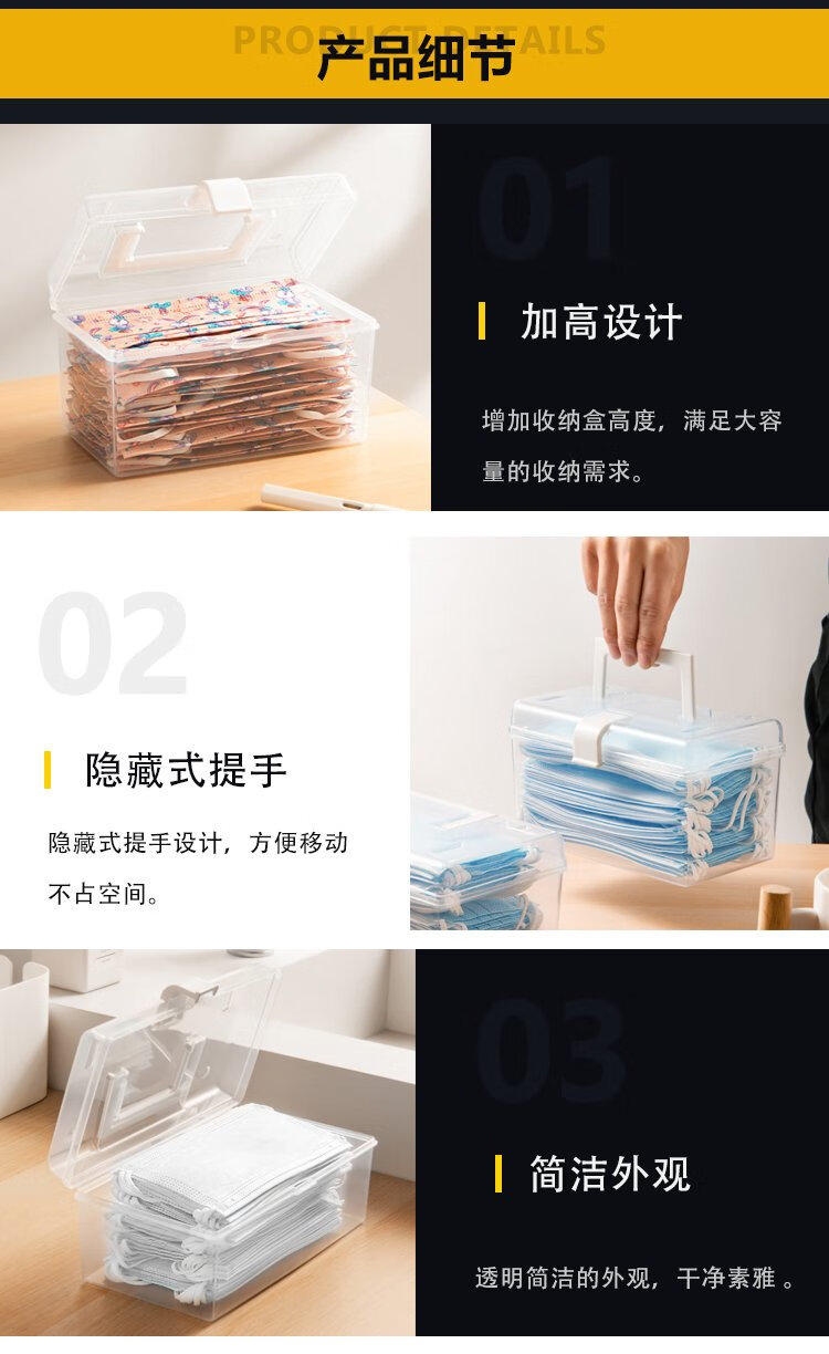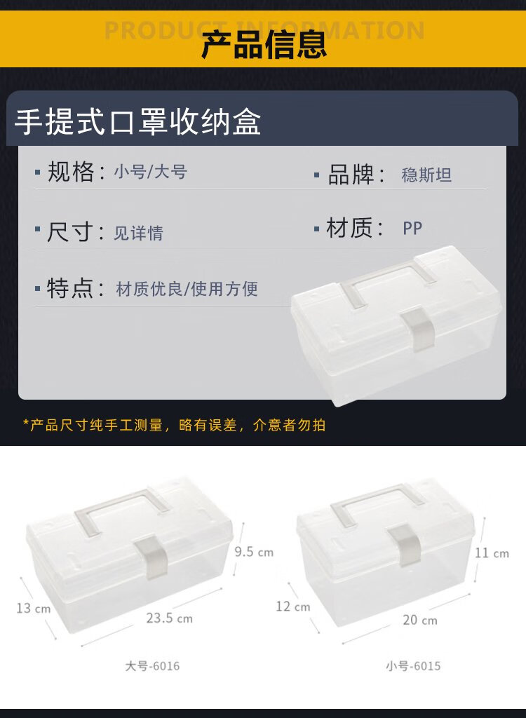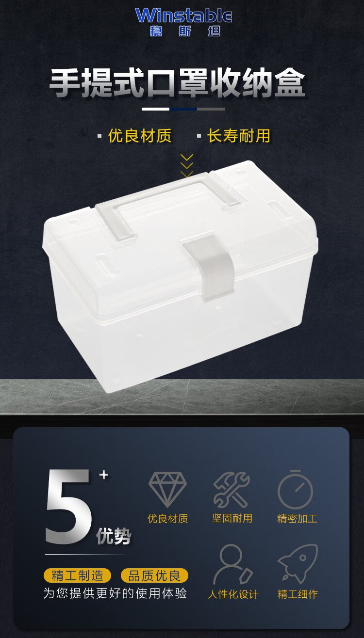 Wenstan W7364 (2 pieces) portable mask storage box, transparent storage box with lid, dust-proof storage box, large size 22.2*12*9