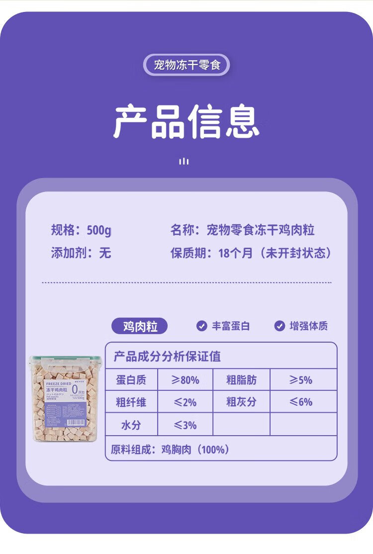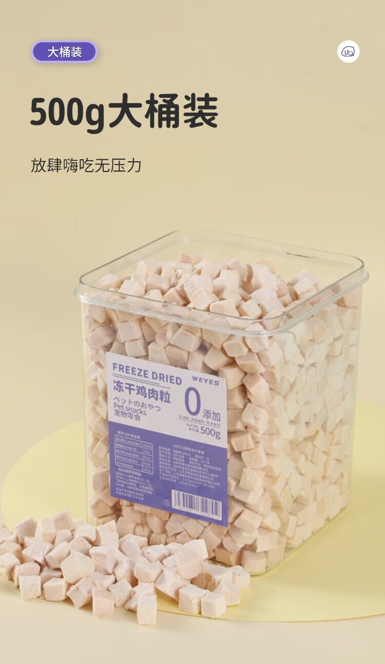 WEYES freeze-dried chicken nuggets 500g barreled into pet snacks for cats and dogs freeze-dried chicken breast jerky nutritious hair