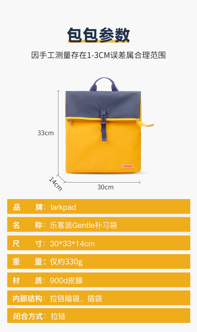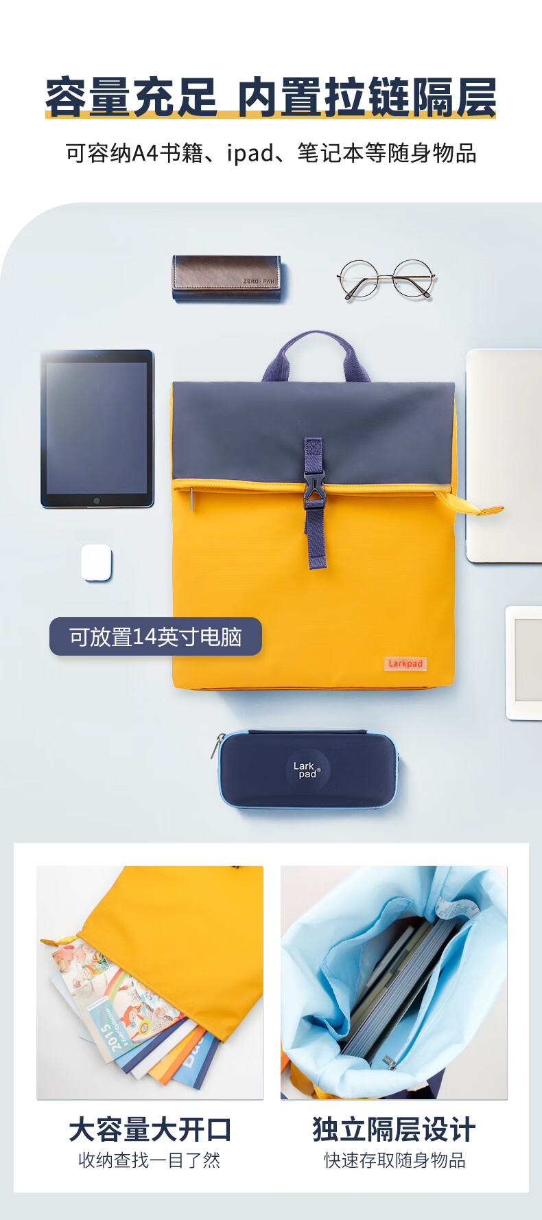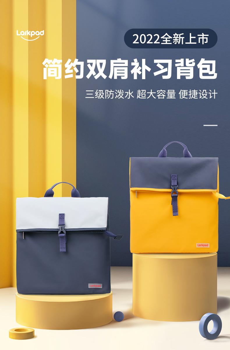 Lark Pad Backpack Tutorial Bag Ultra Light Fashion Casual Wear-Resistant Water-Repellent Tutorial School Bag 107 Blue and Yellow