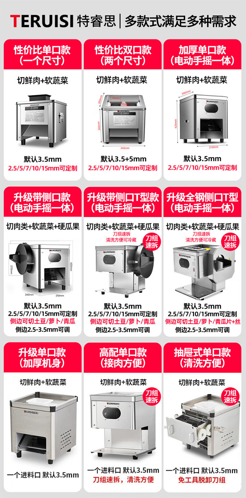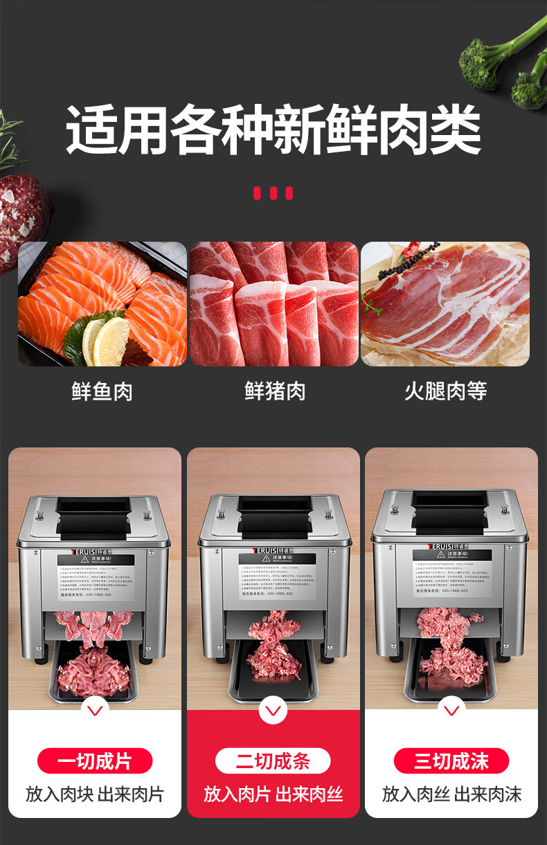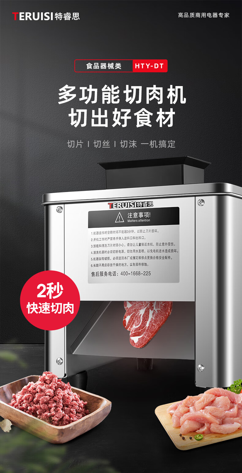TERUISI Meat Slicer Meat Grinder Commercial Electric Vegetable Slicer Slicer Multifunctional All-in-One Fully Automatic Potato Meat Shredded Machine HTY-DT Single Port 3.5mm