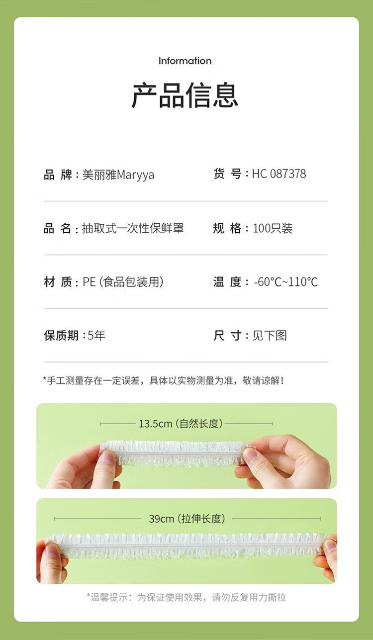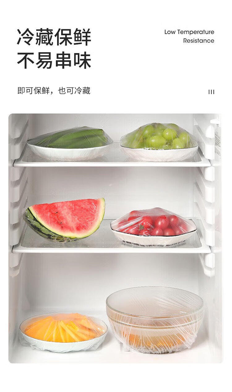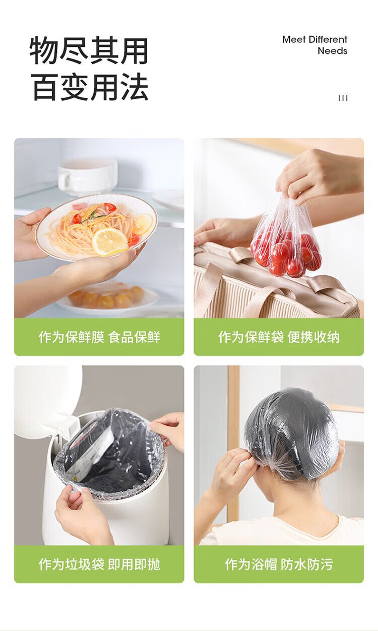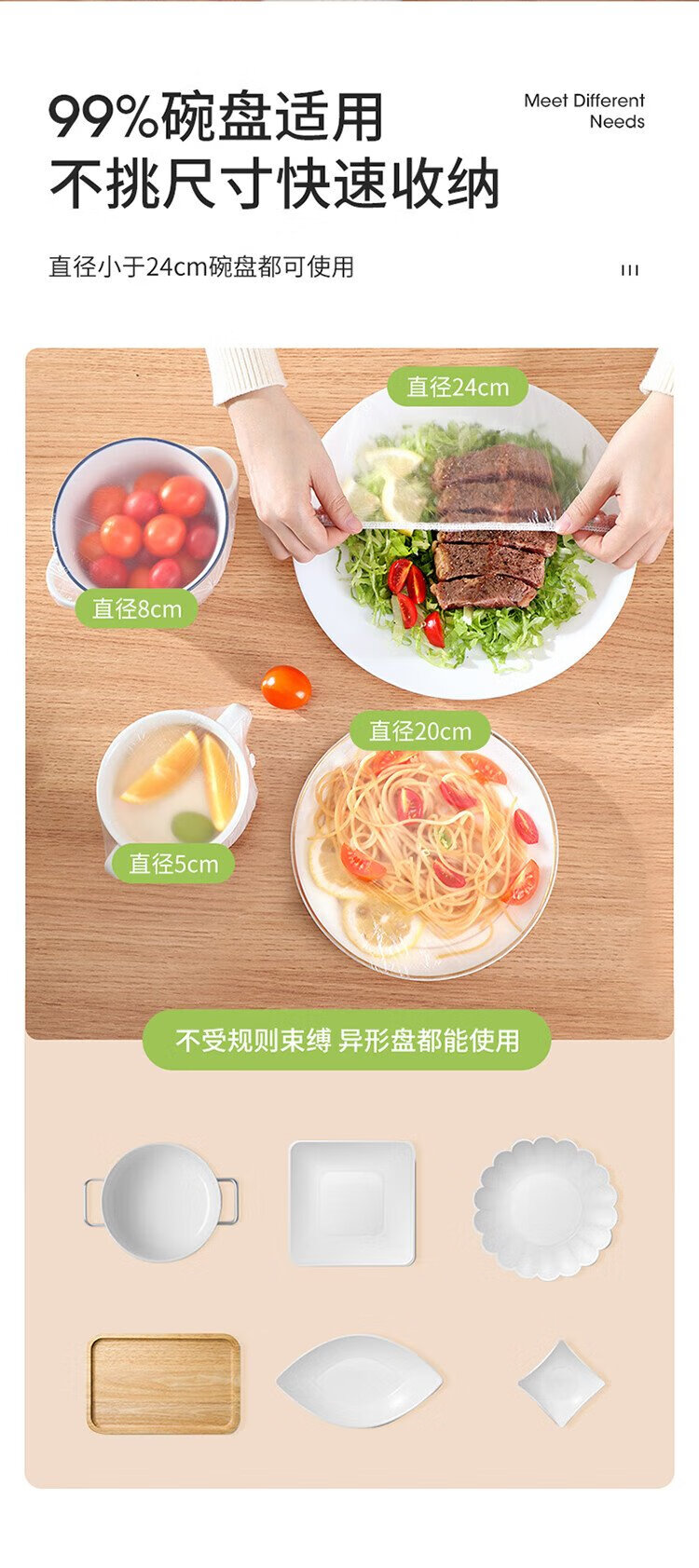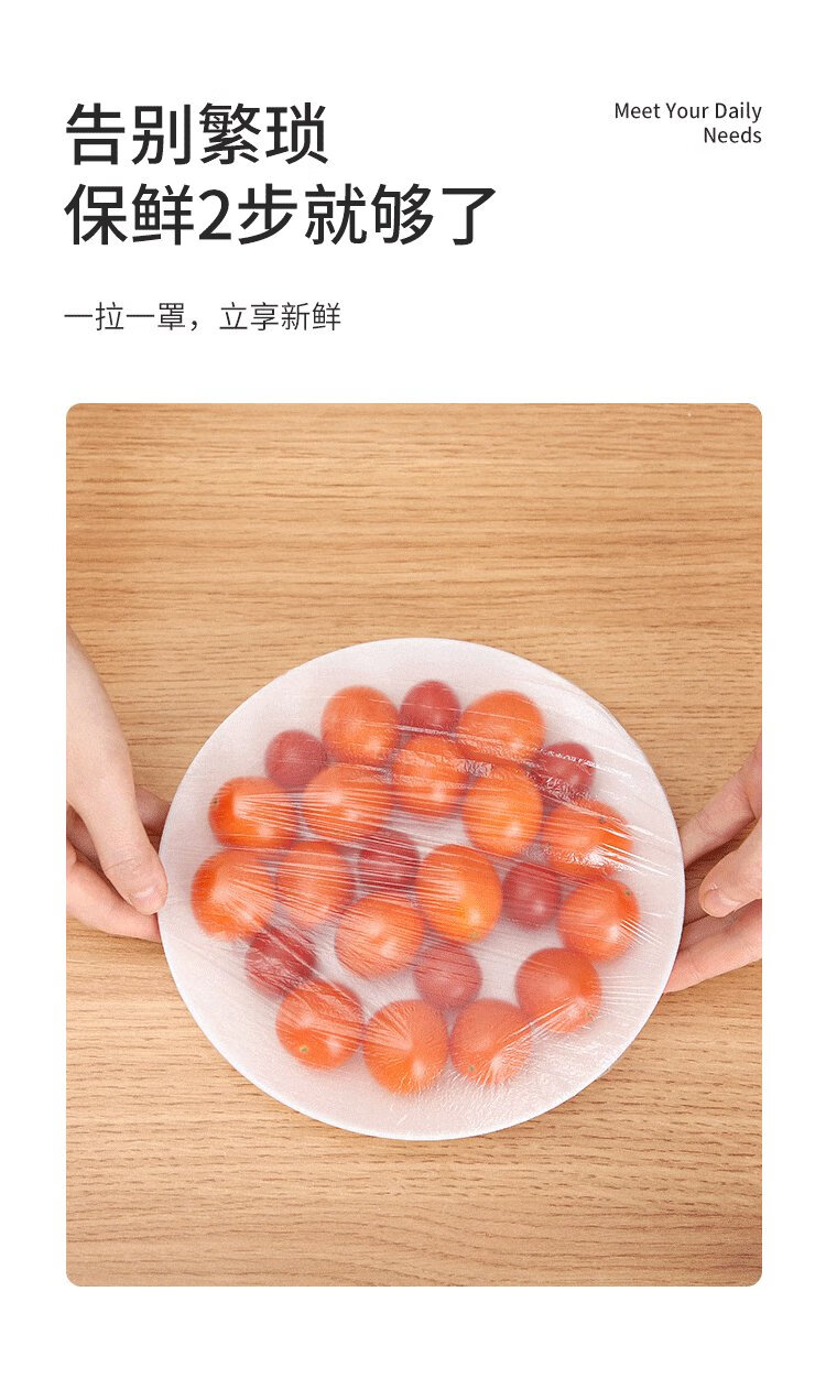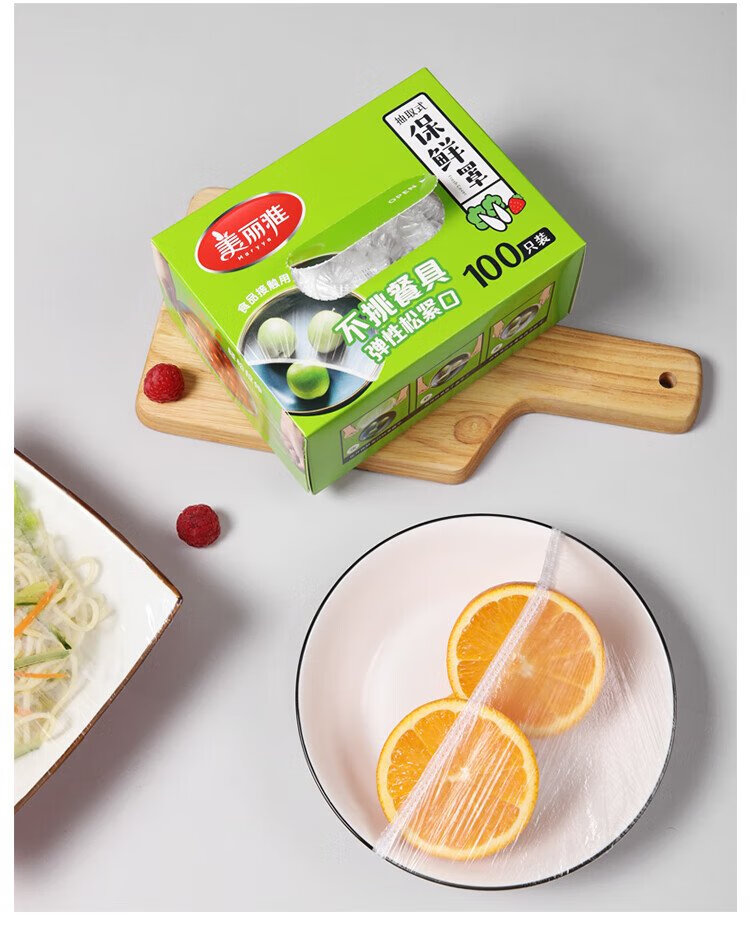 Meiya Disposable Plastic Wrap Sets in Boxes, 100 Pieces, Refrigerator Food Preservation Covers, Elastic Self-Sealing, Universal Size