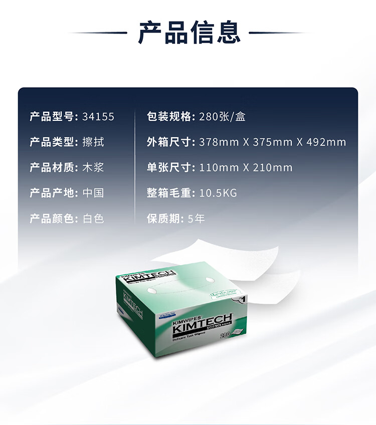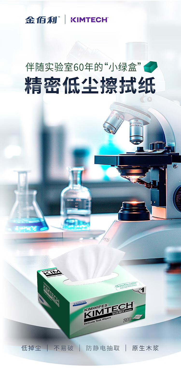 Kimtech Kimberly Precision Instrument Wiping Paper Small Green Box/210 110mm 280 sheets/box Laboratory Lens Dust-Free Wiping Paper High Standard Lens Cleaning Paper 34155
