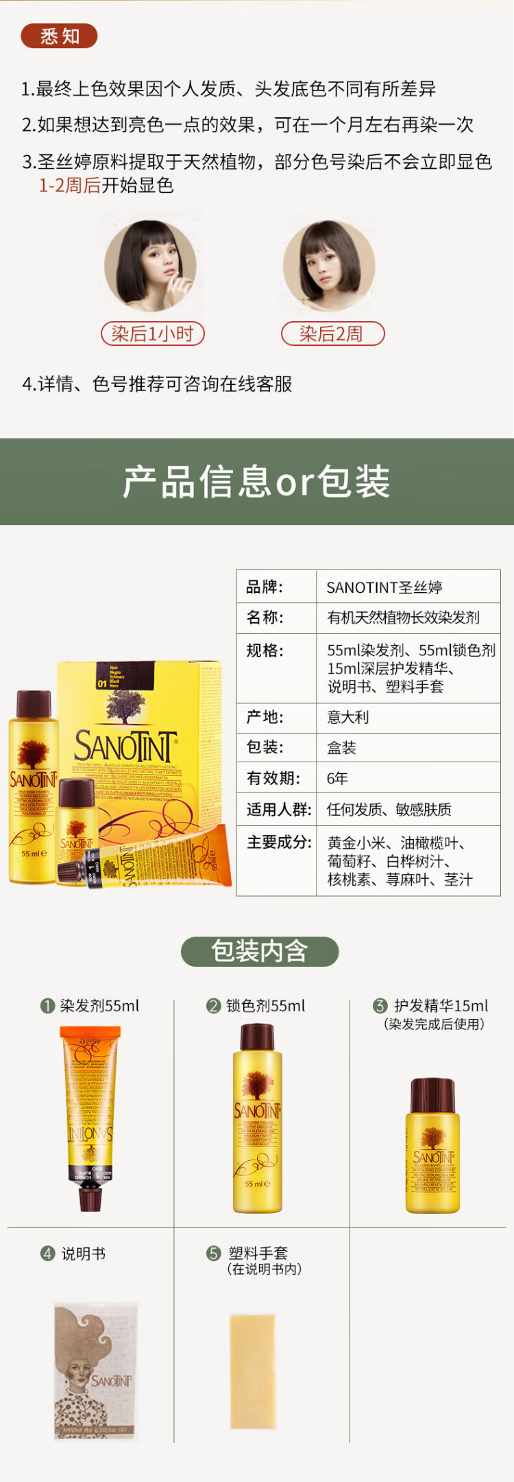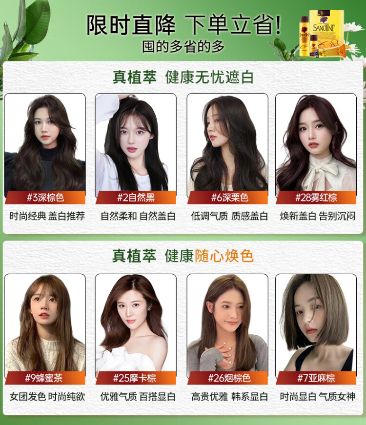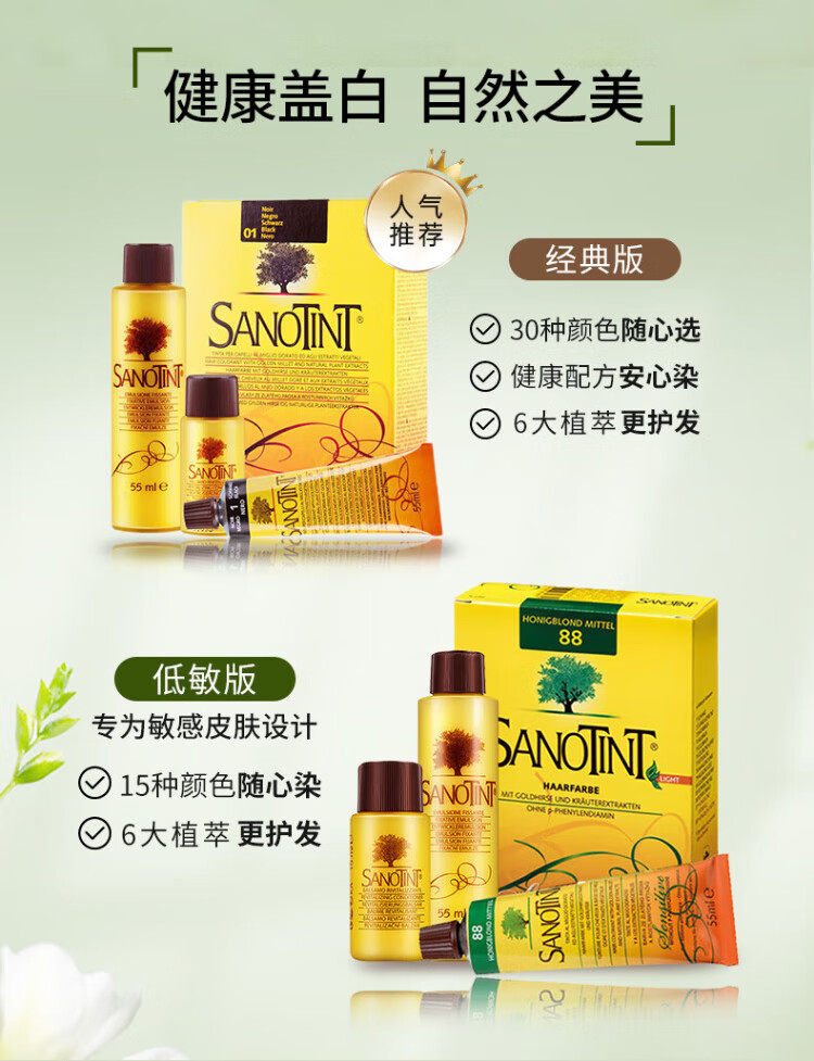 SANOTINT hair dye plant natural whitening hair dye linen brown men and women imported from Italy SANOTINT