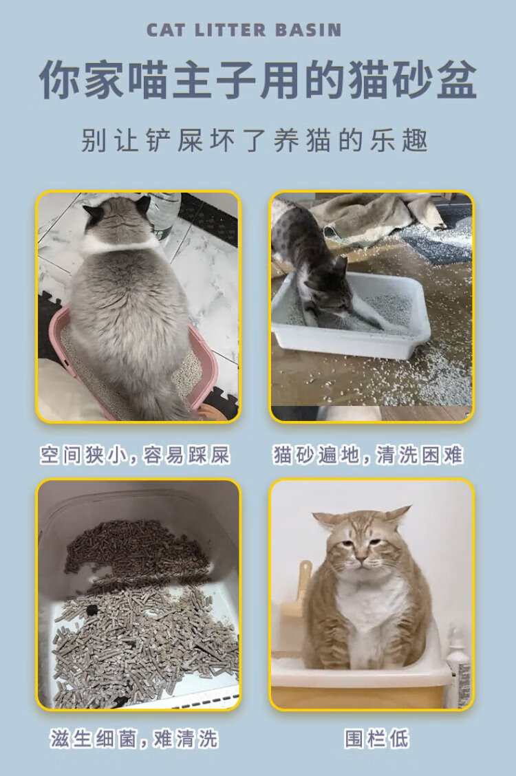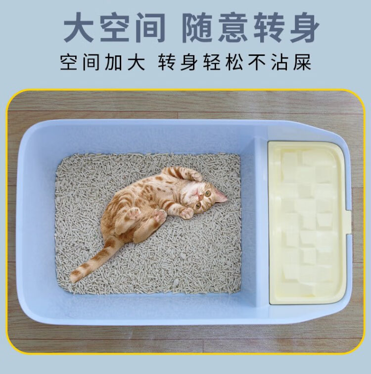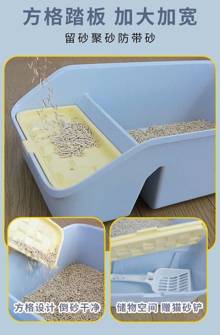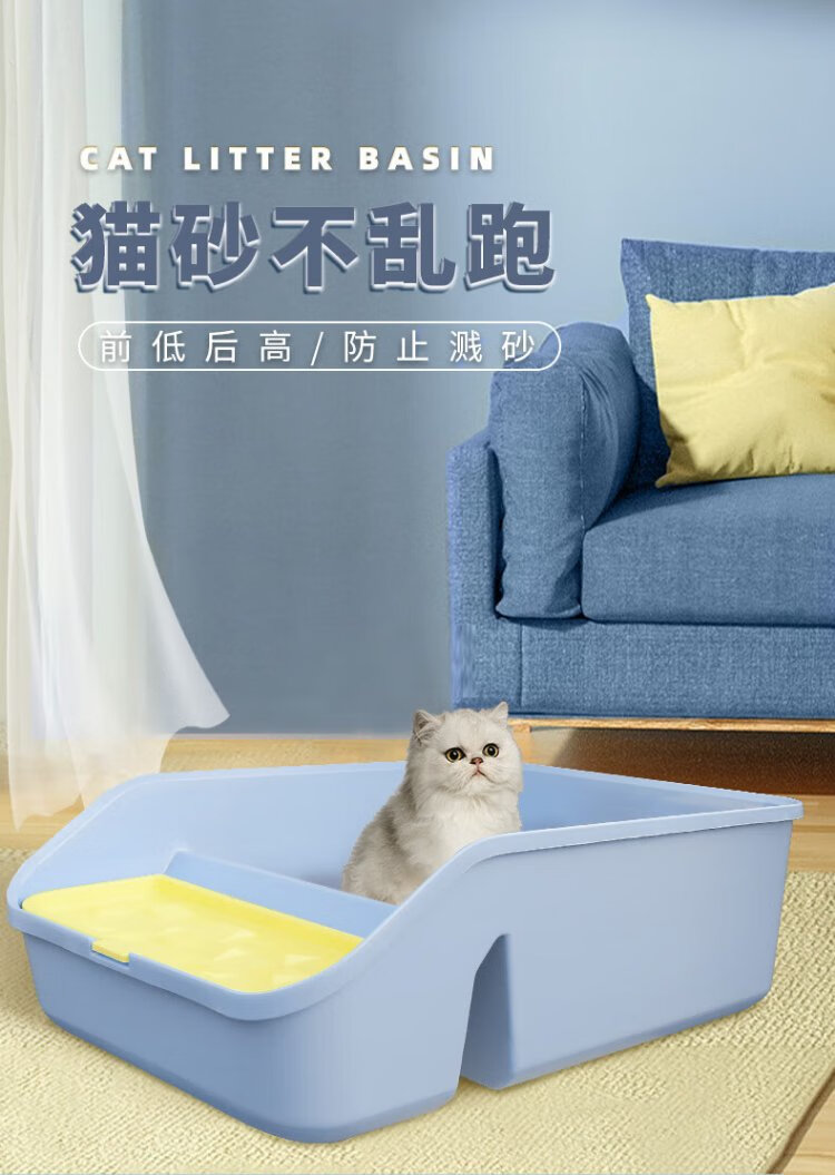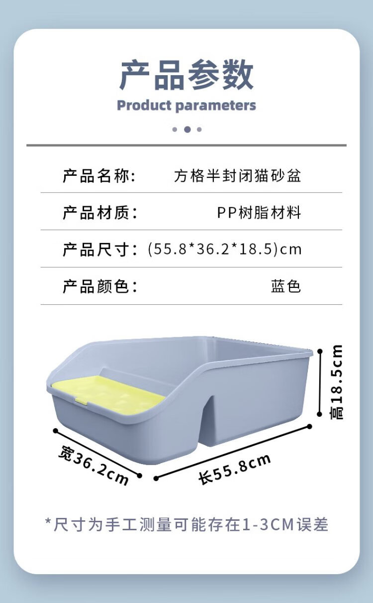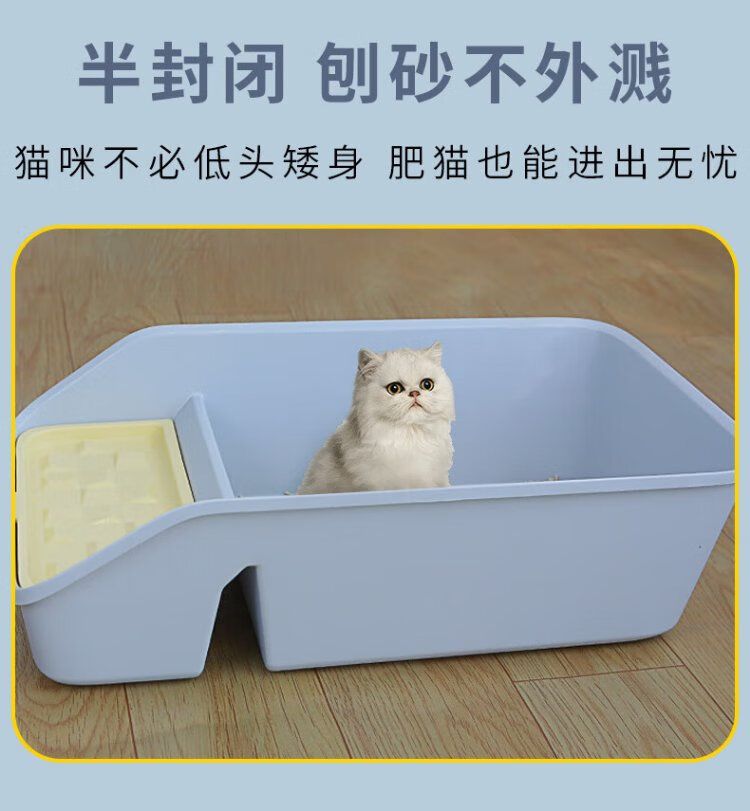 CHONGLEGUAI cat litter box semi-enclosed cat toilet anti-splash cat litter box kitten with cat litter scoop blue small and medium size