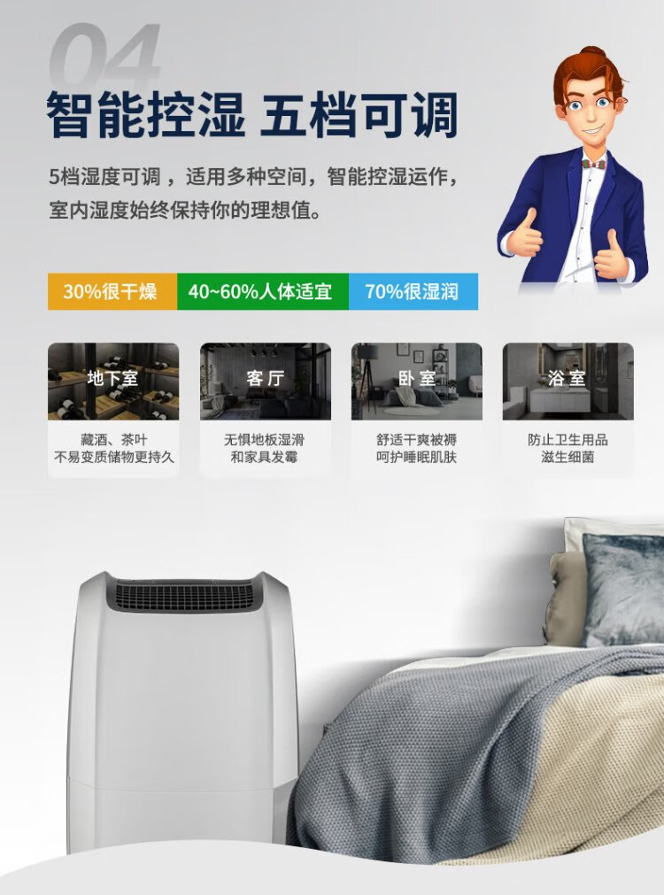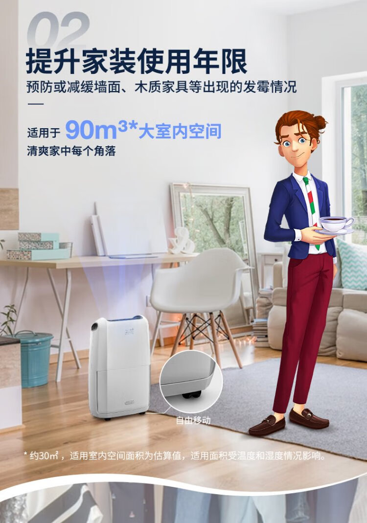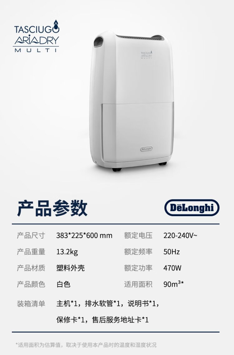 Delonghi DDSX220 dehumidifier household high-power dehumidifier dryer one-button drying automatic dehumidifier 20L back to Nantian special spot