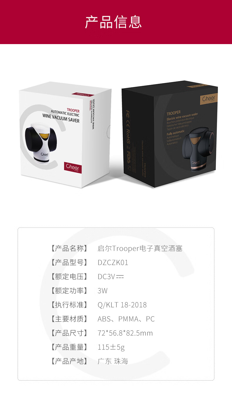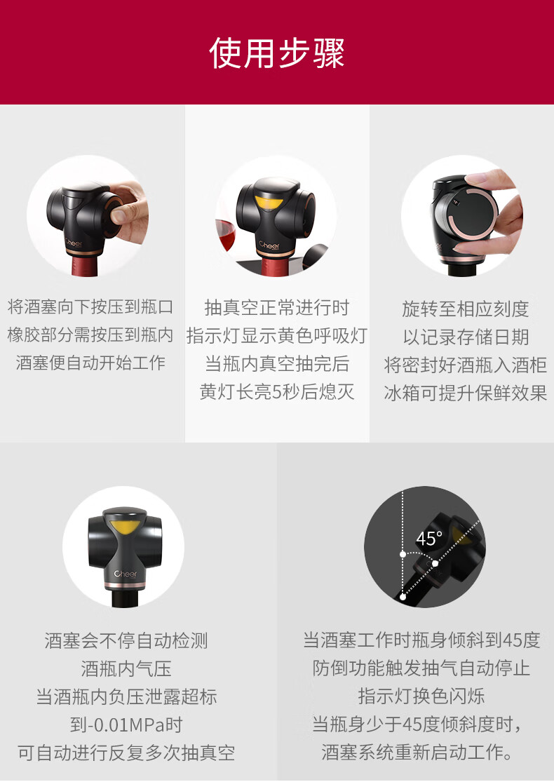 Cheer red wine stopper intelligent electronic vacuum preservation device fully automatic bottle stopper wine red wine stopper preservation sealing plug
