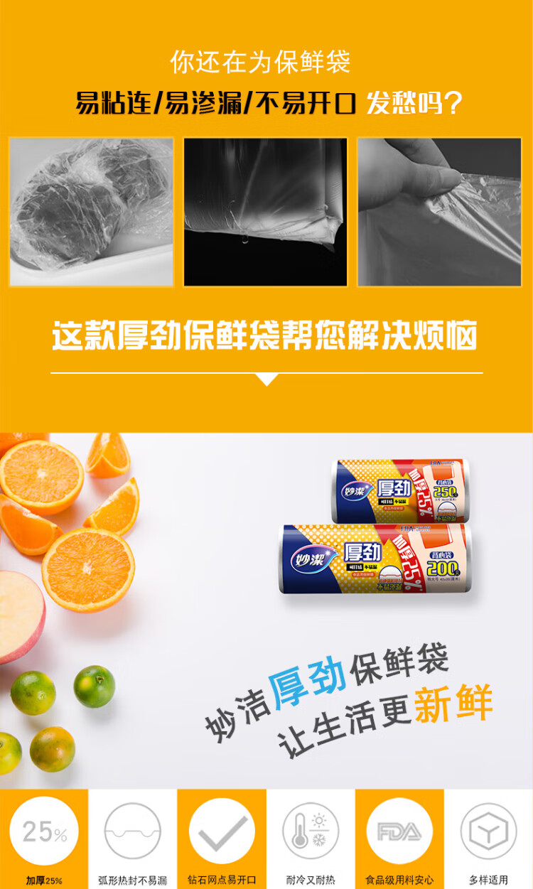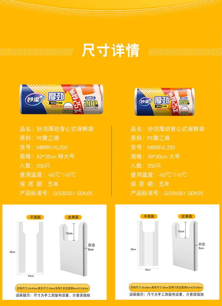 Miaojie Houjin series vest style fresh-keeping bags large size 250 pieces