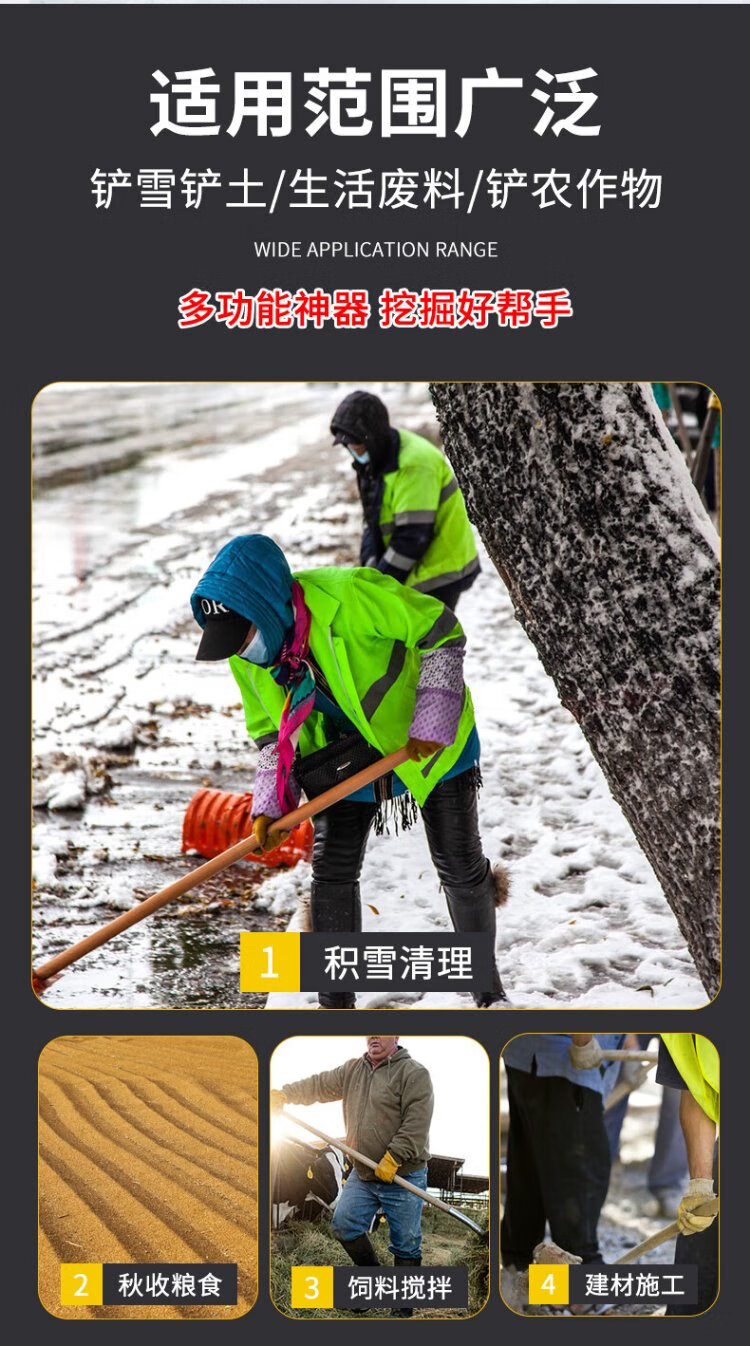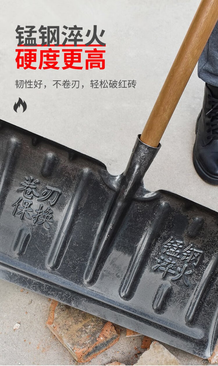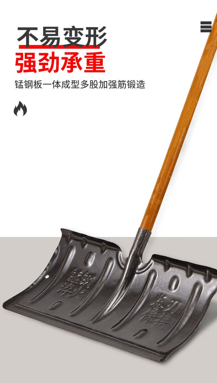 Mandelai snow shovel pusher snowboard pusher snow shovel manganese steel sled shovel large snow shovel tool de-icing ice-breaking shovel + 1.3 meter solid wood pole