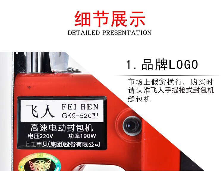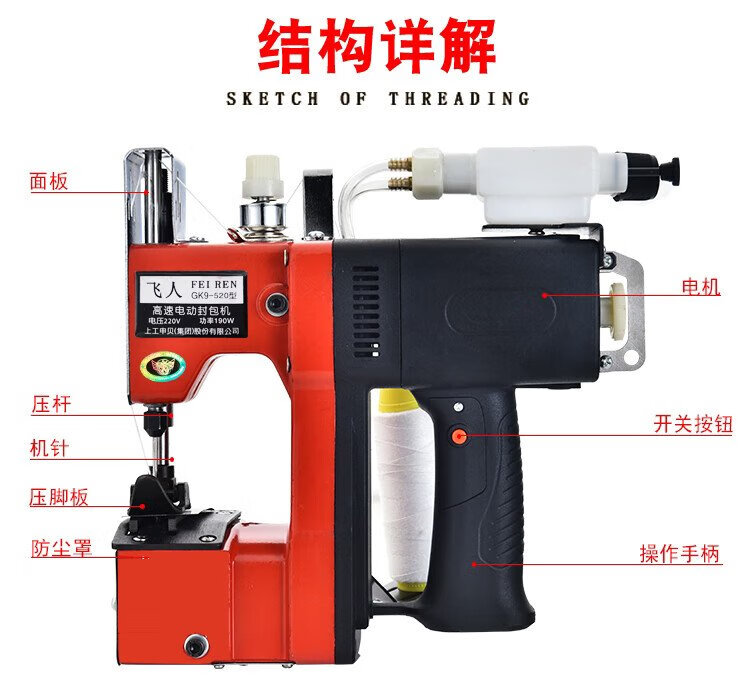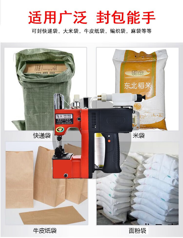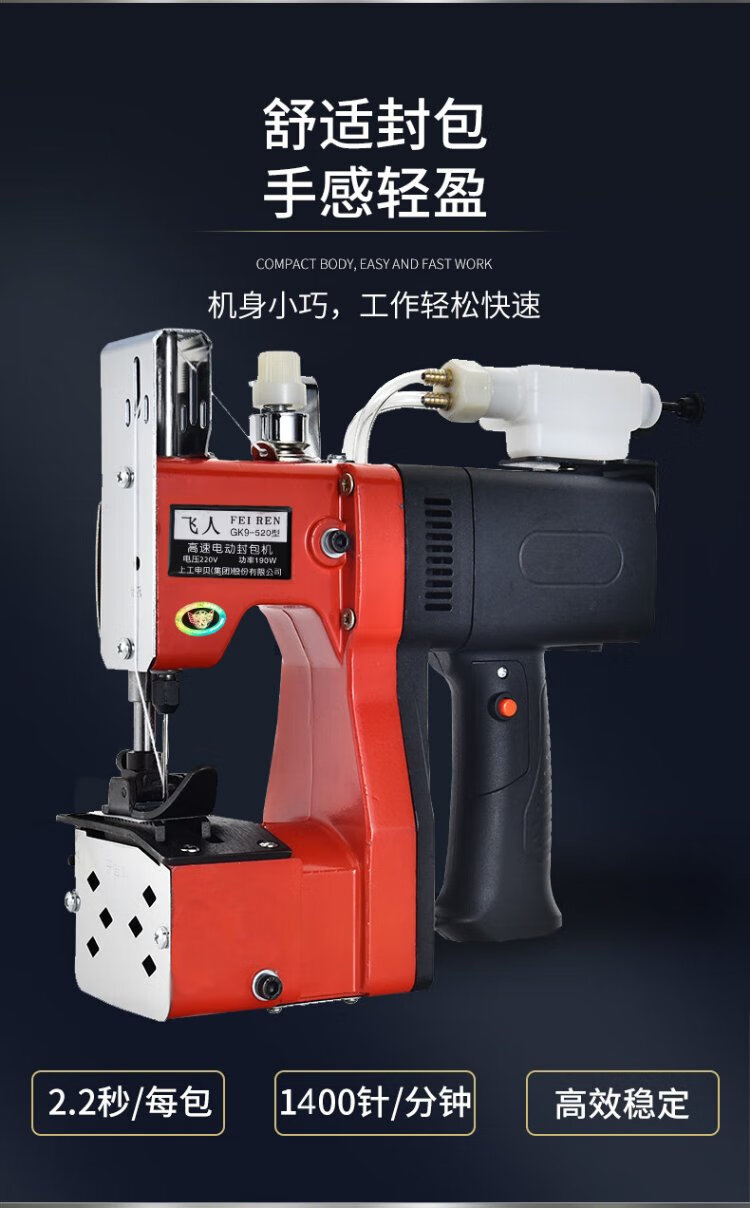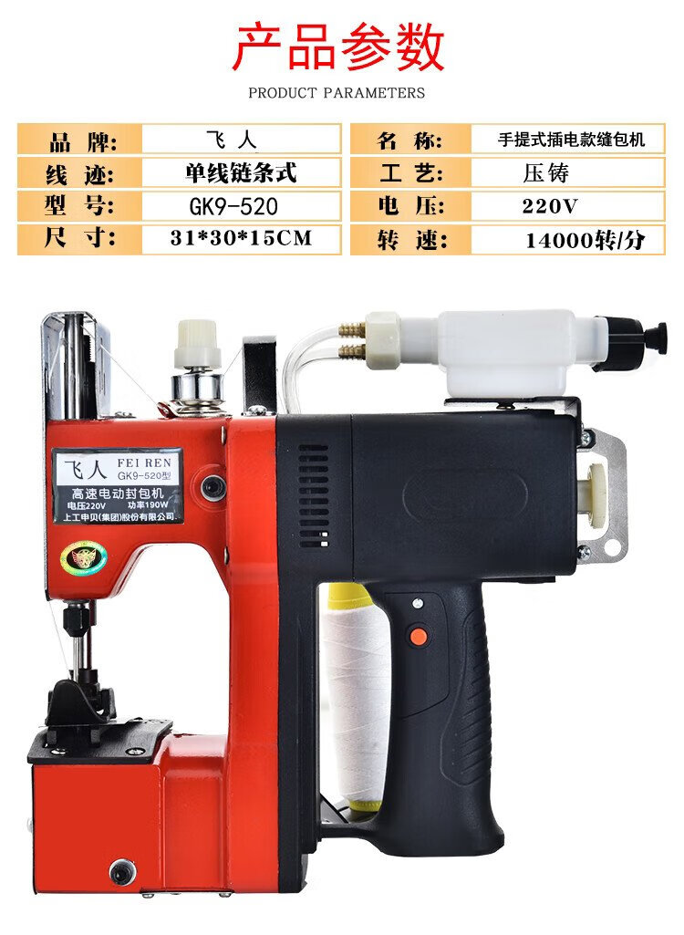 Feiren GK9-520 portable plug-in bag sewing machine high-speed bag sealing machine woven bag sack rice bag express sealing machine snakeskin bag baling machine sewing machine 220V