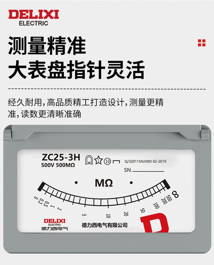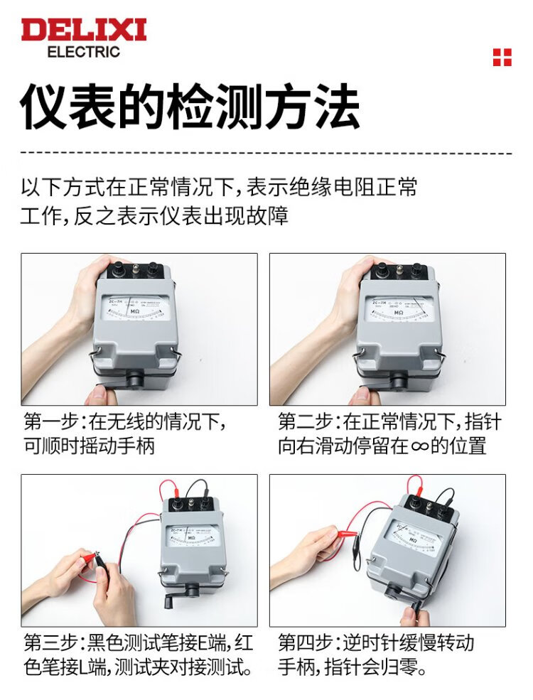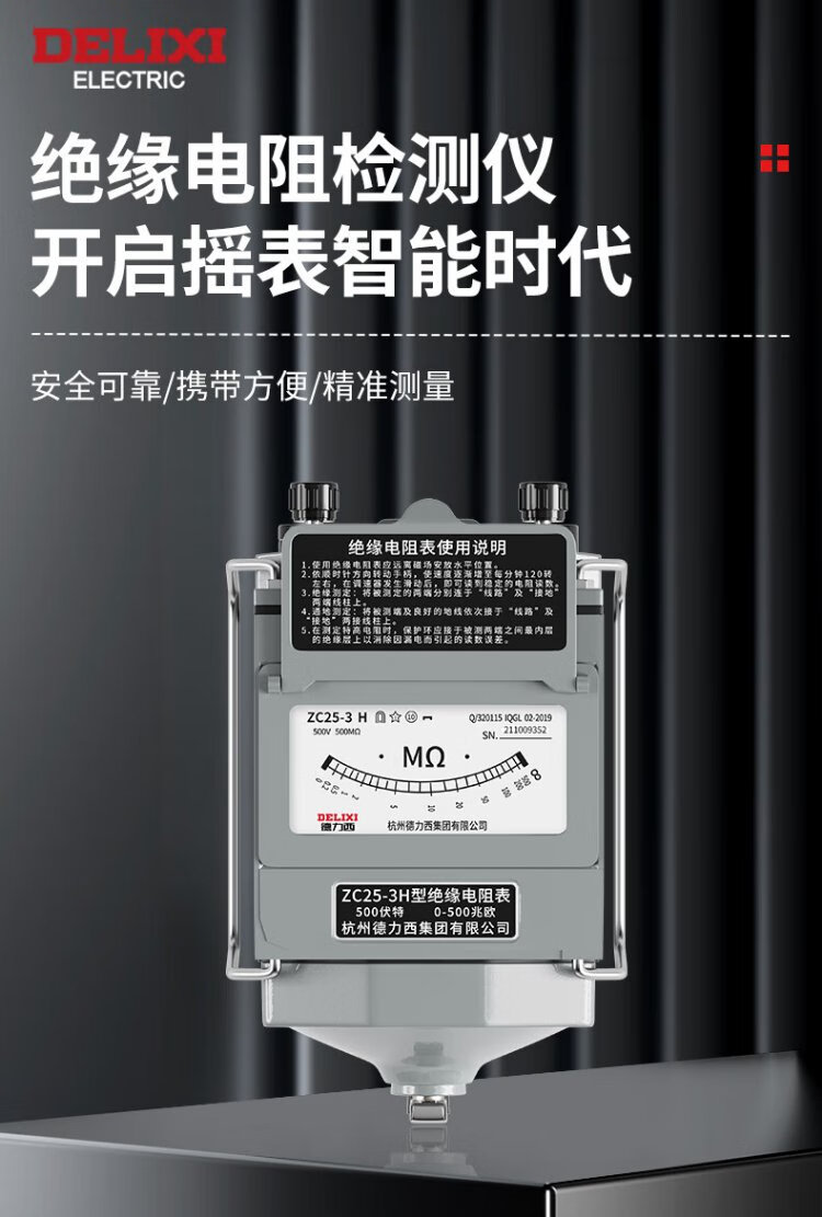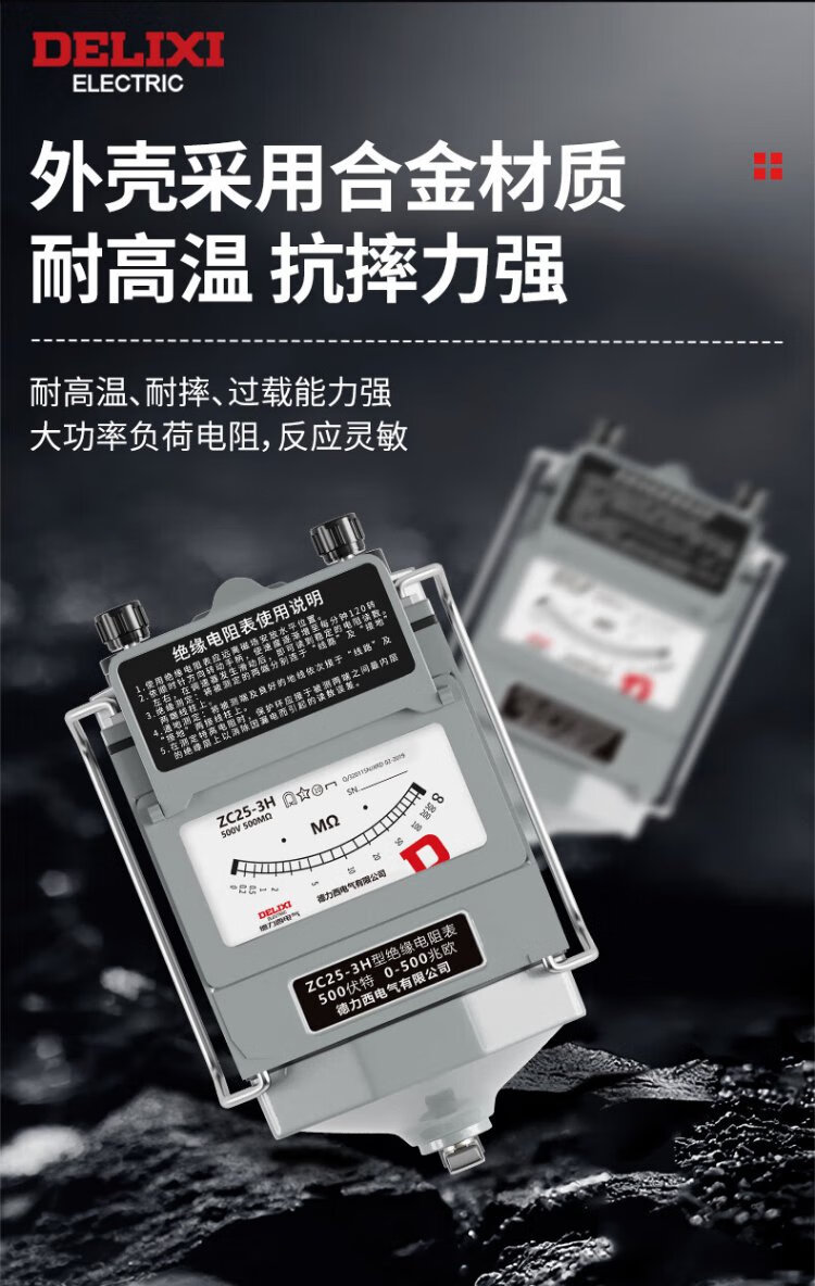 Delixi Electric Megohmmeter Alloy Insulation Resistance Tester Hand-cranked Electrician Detection Resistance Meter 500V/500M