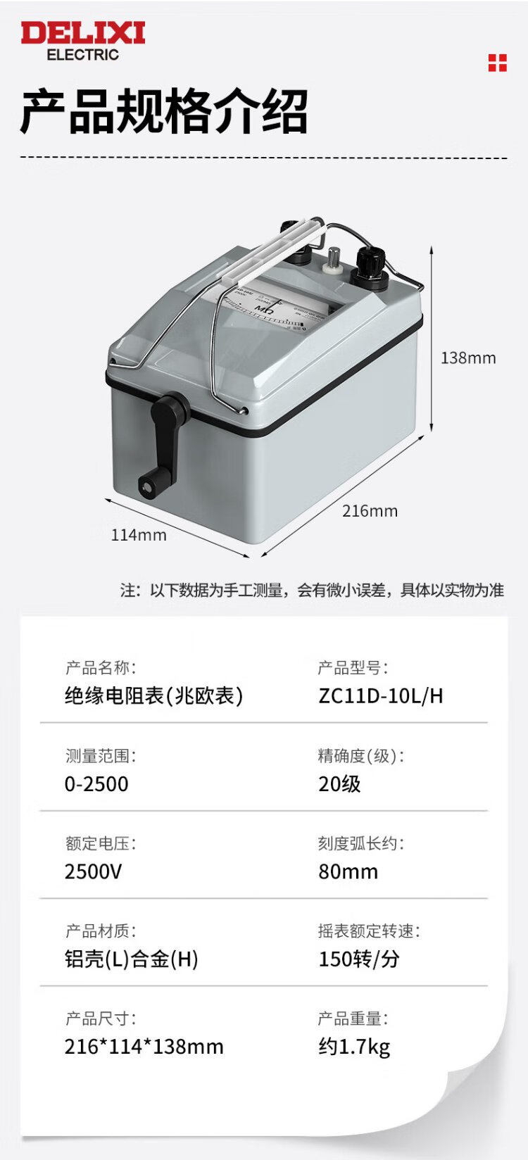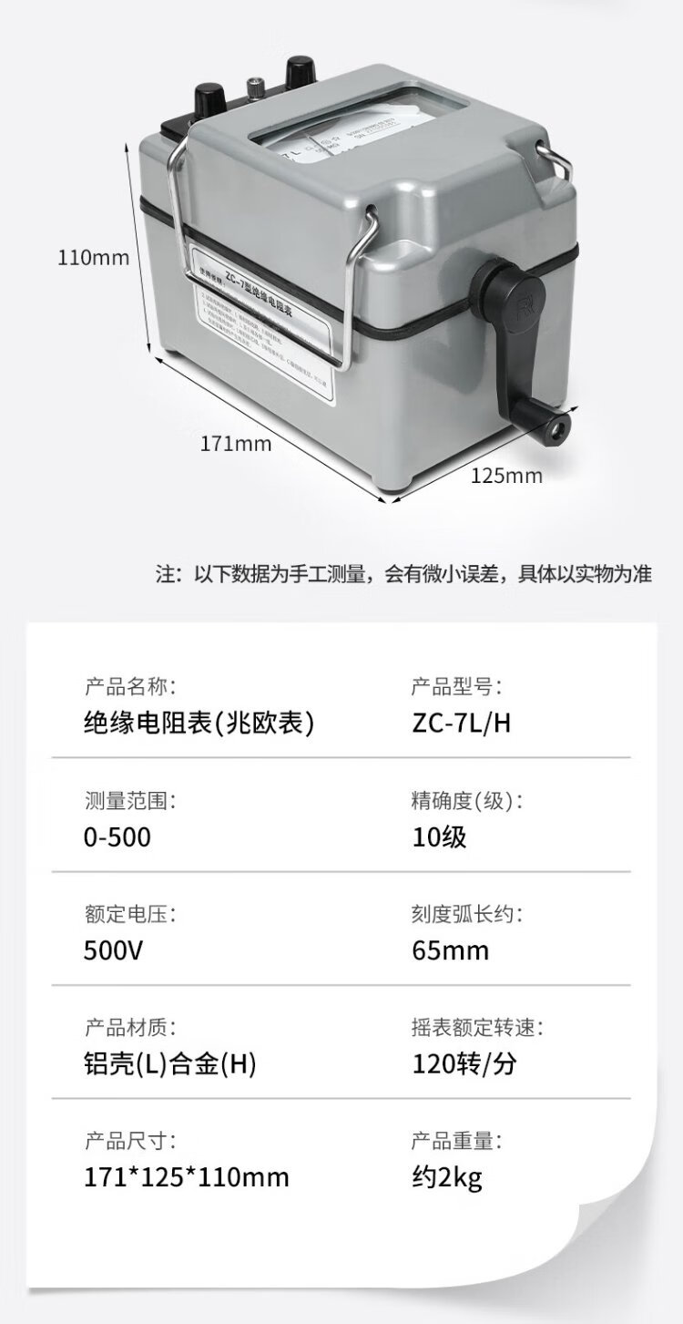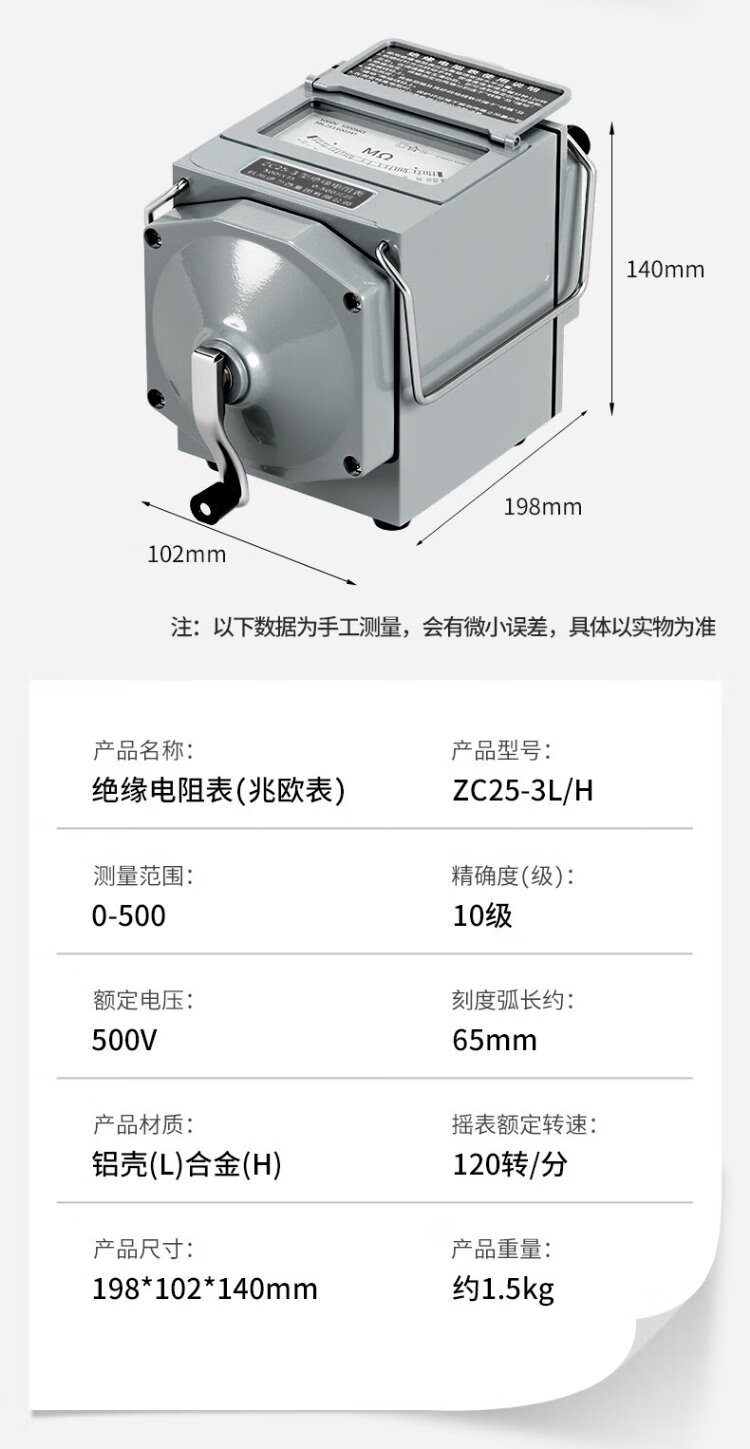 Delixi Electric Megohmmeter Alloy Insulation Resistance Tester Hand-cranked Electrician Detection Resistance Meter 500V/500M