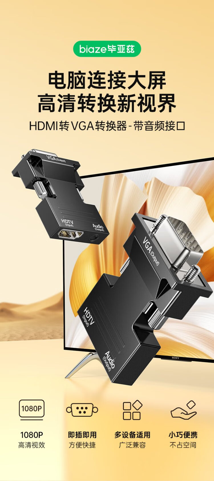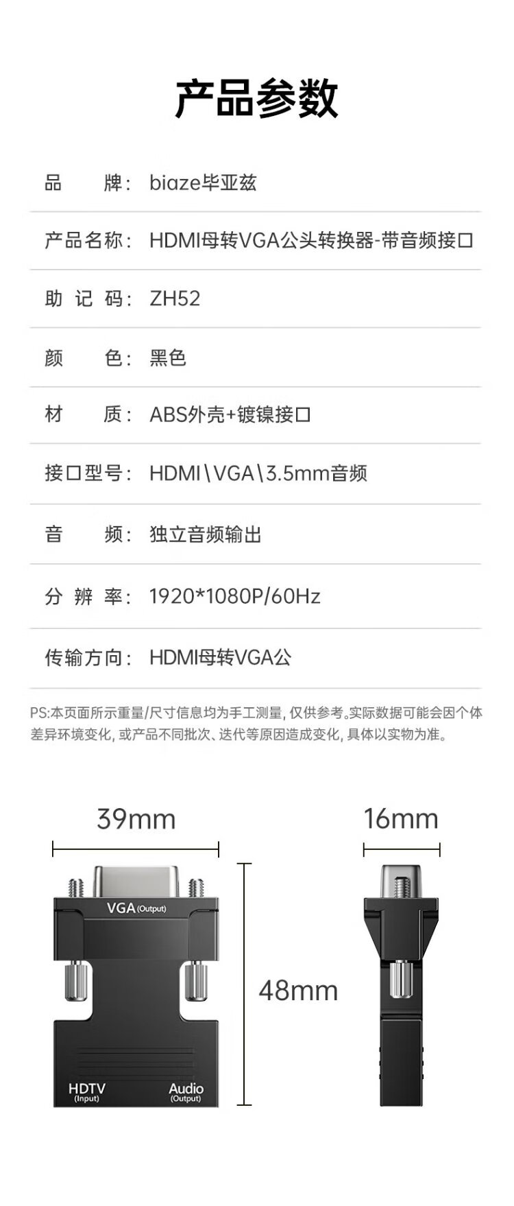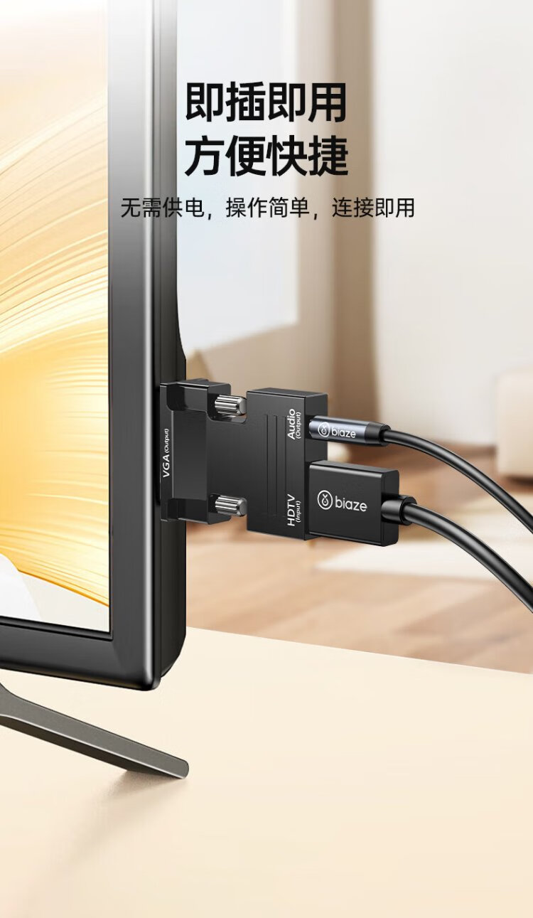 Biaz HDMI female to VGA male converter with audio port laptop HD adapter connected to TV projection adapter with audio port ZH52