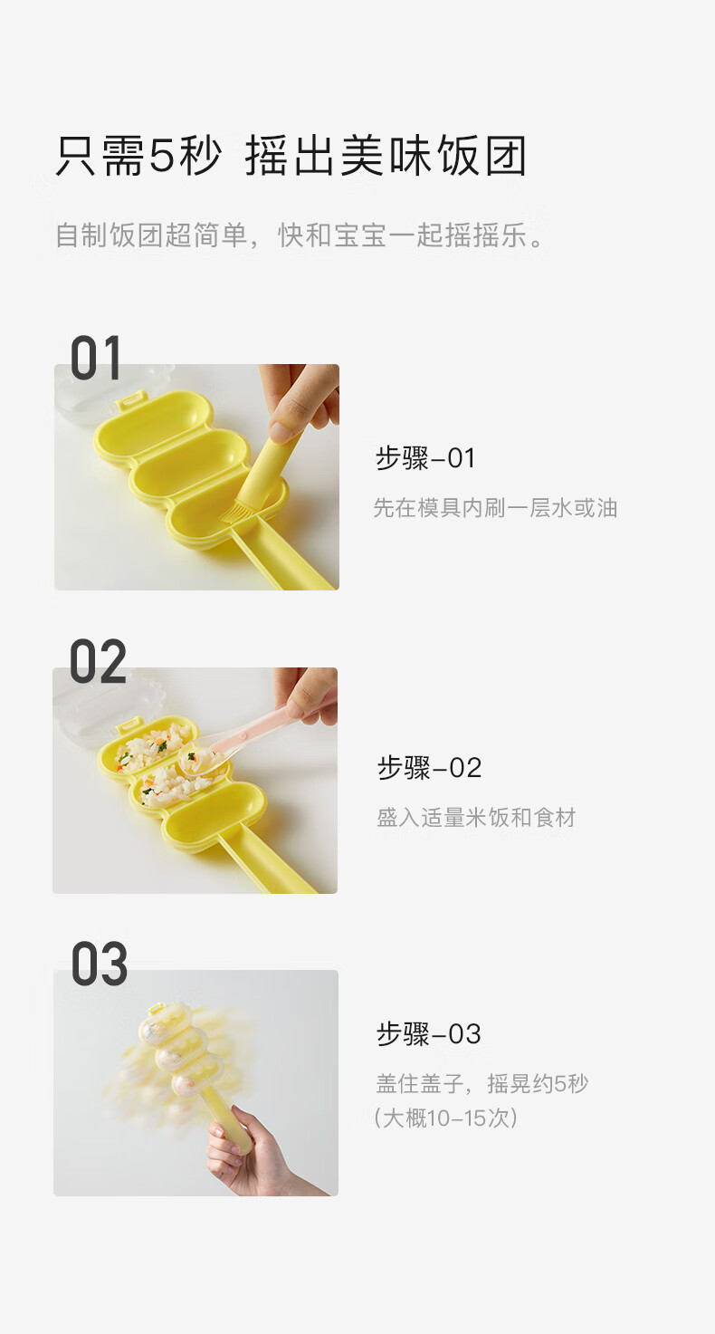 Babycare rice ball mold baby food machine safe rice ball tool eating artifact shaker cream yellow