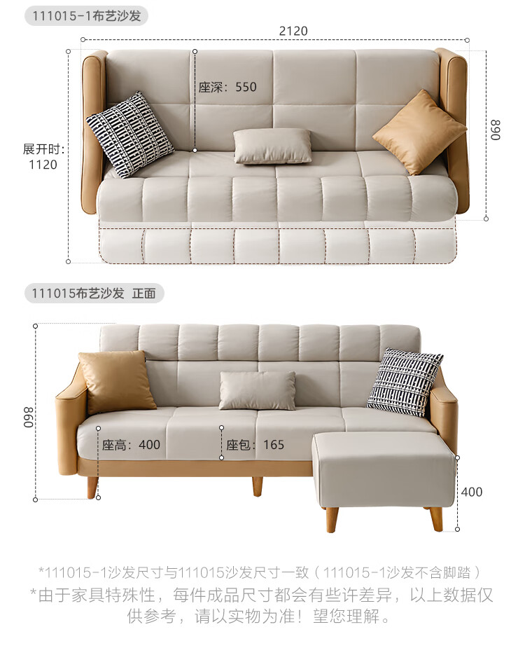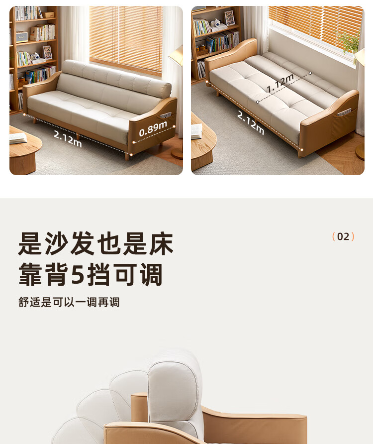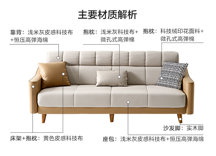 Quanyou Home Sofa Bed Nordic Simple Furniture Technology Fabric Sofa Three-Place Foldable Two-Purpose Recliner Sofa Bed
