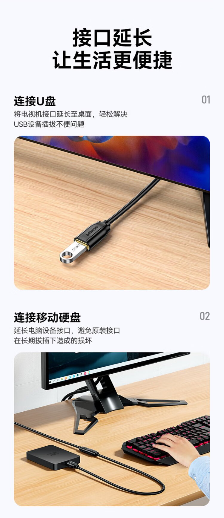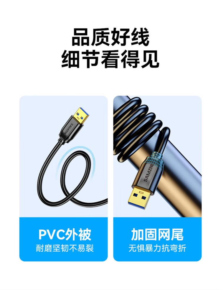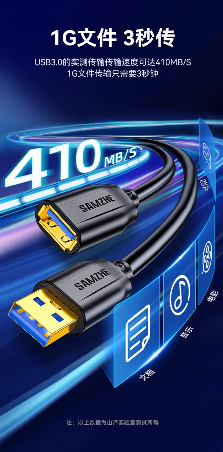 Shanze usb3.0 extension cable 5 meters male to female TV USB disk mouse keyboard extension cable computer hard disk data connection extension cable printer splitter adapter cable UK-050