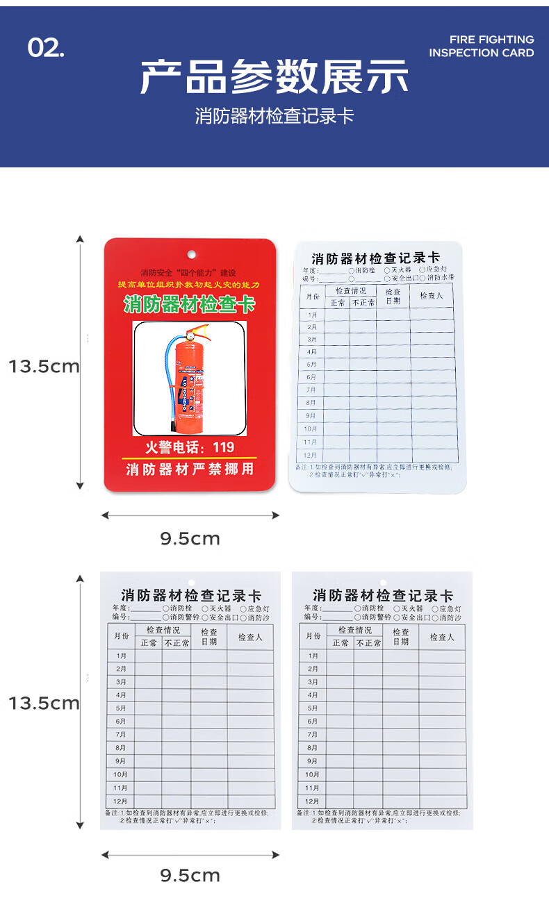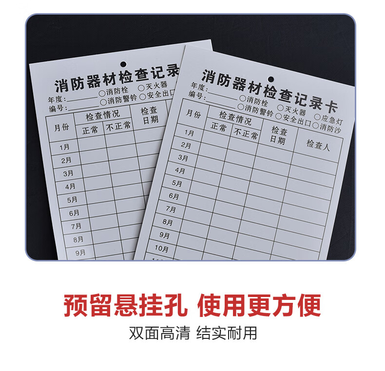 Xinxuan fire equipment inspection card fire extinguisher inspection card daily inspection record sheet fire hydrant fire hydrant fire facility inspection card registration card multi-purpose single-sided 10 sheets