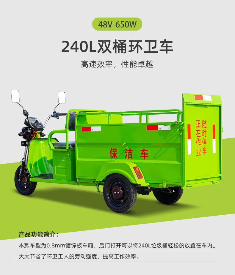Shukou (Supercloud) electric three-wheeled garbage truck, street cleaning truck, sanitation truck, residential property community trash can transfer cleaning truck, 240L double bucket special