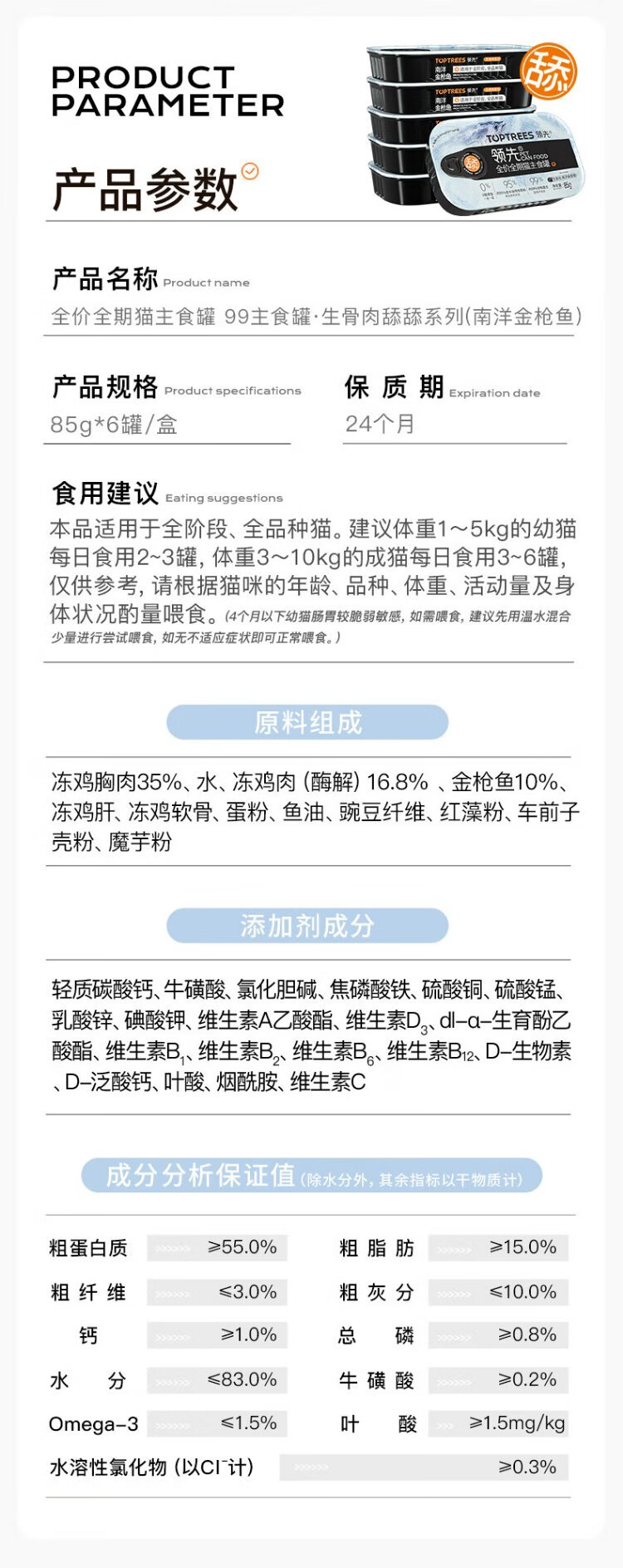 Leading Ella rabbit meat raw bone staple cat canned cat snacks wet food pet nutrition cat rice 85g*6 cans