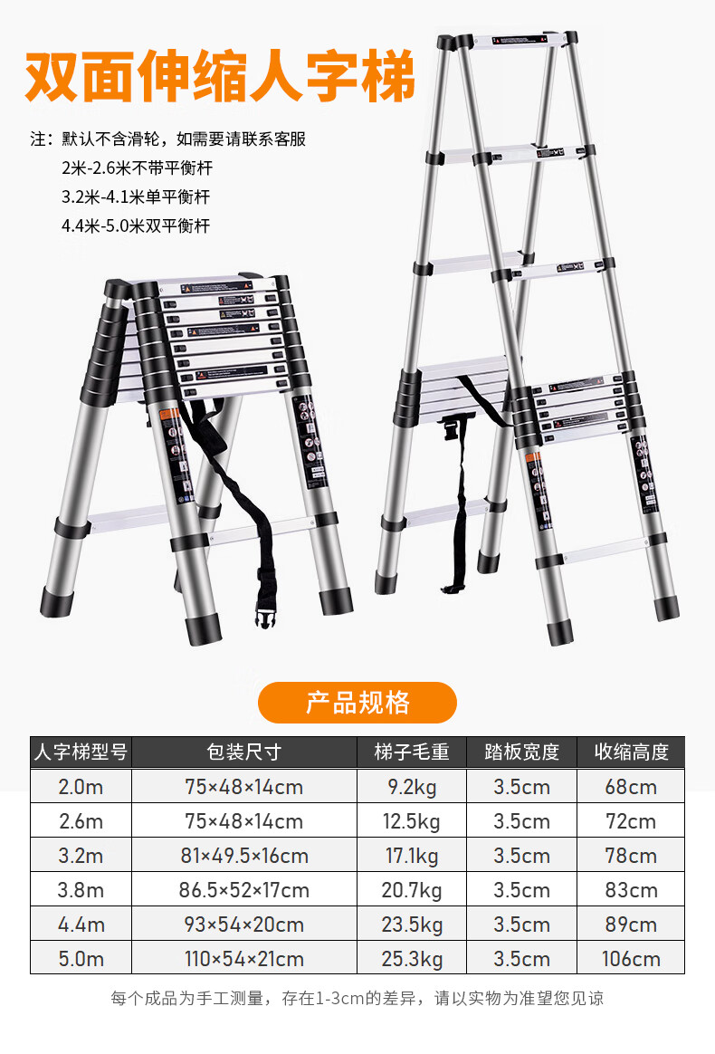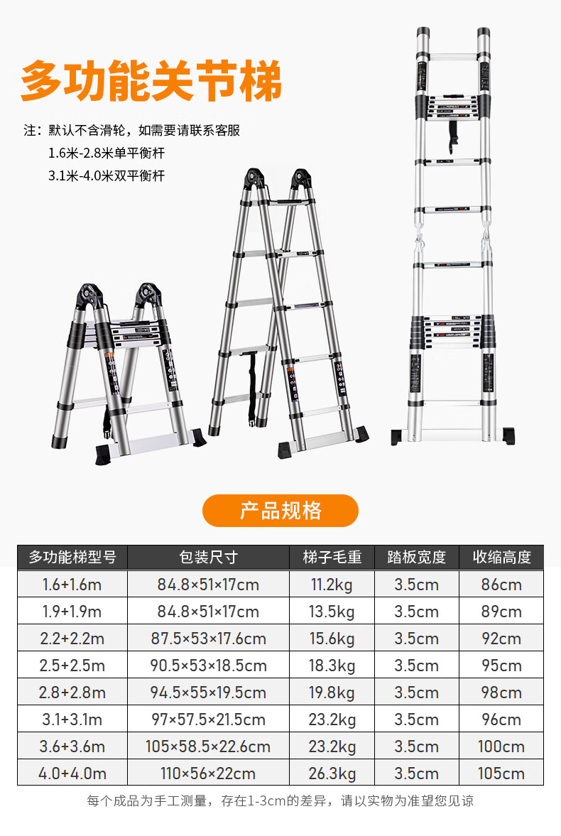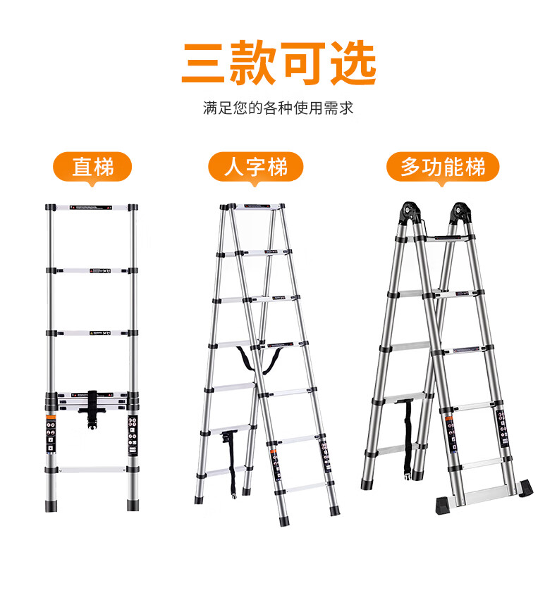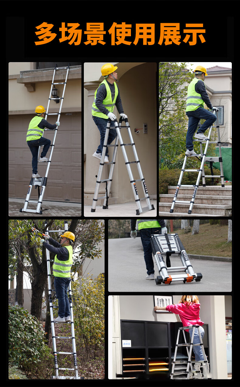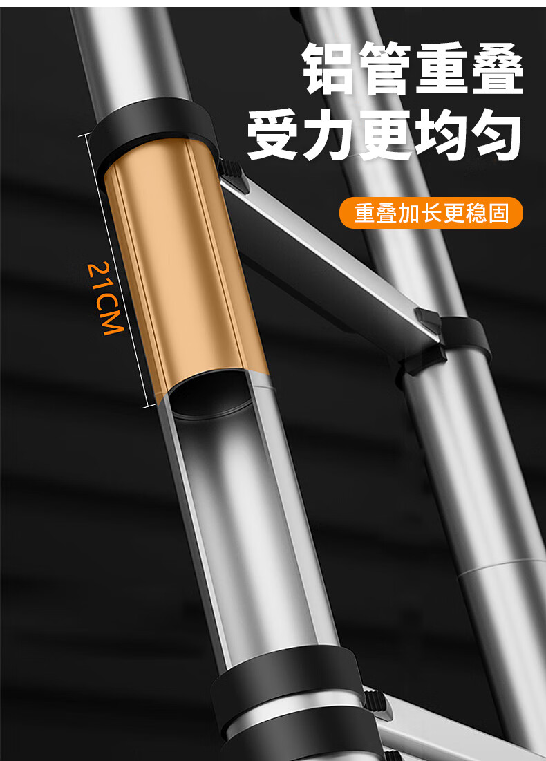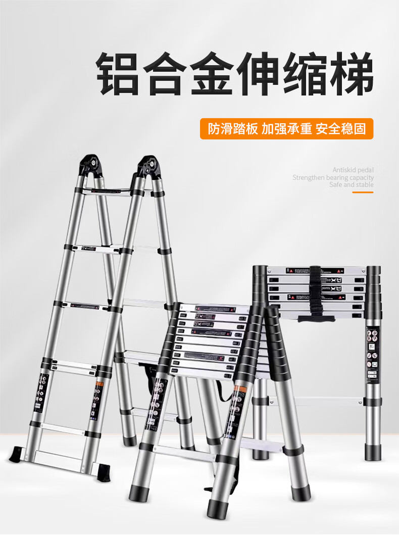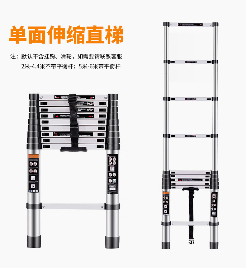 Haike Yijia single-sided aluminum alloy telescopic ladder portable bamboo single ladder multi-functional joint lift engineering ladder attic staircase straight ladder single-sided telescopic ladder 3.8 meters
