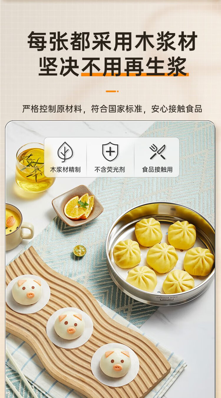 Cui Dahuang steamer paper bun pad paper steamed bun paper steamed bun paper disposable 110 pieces diameter 18cm