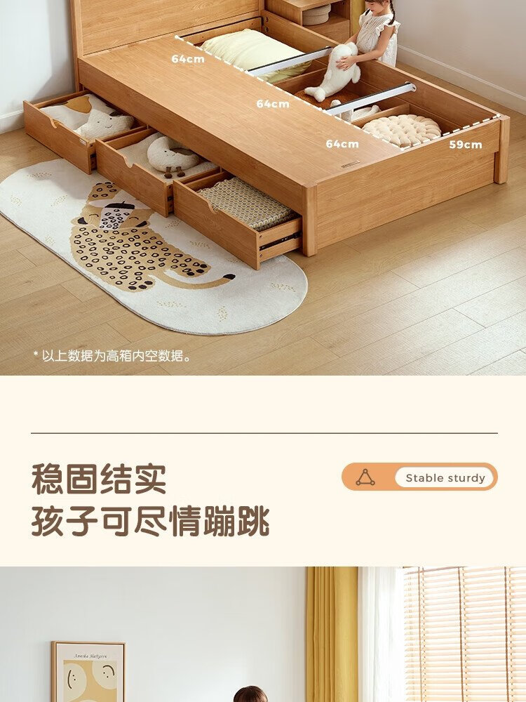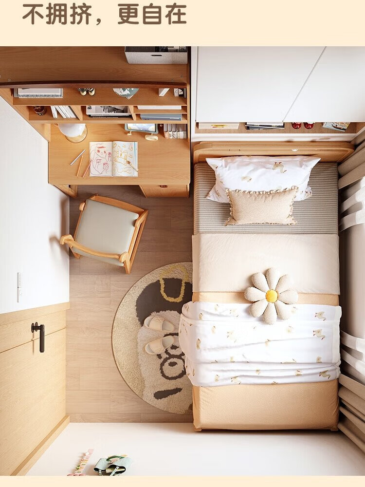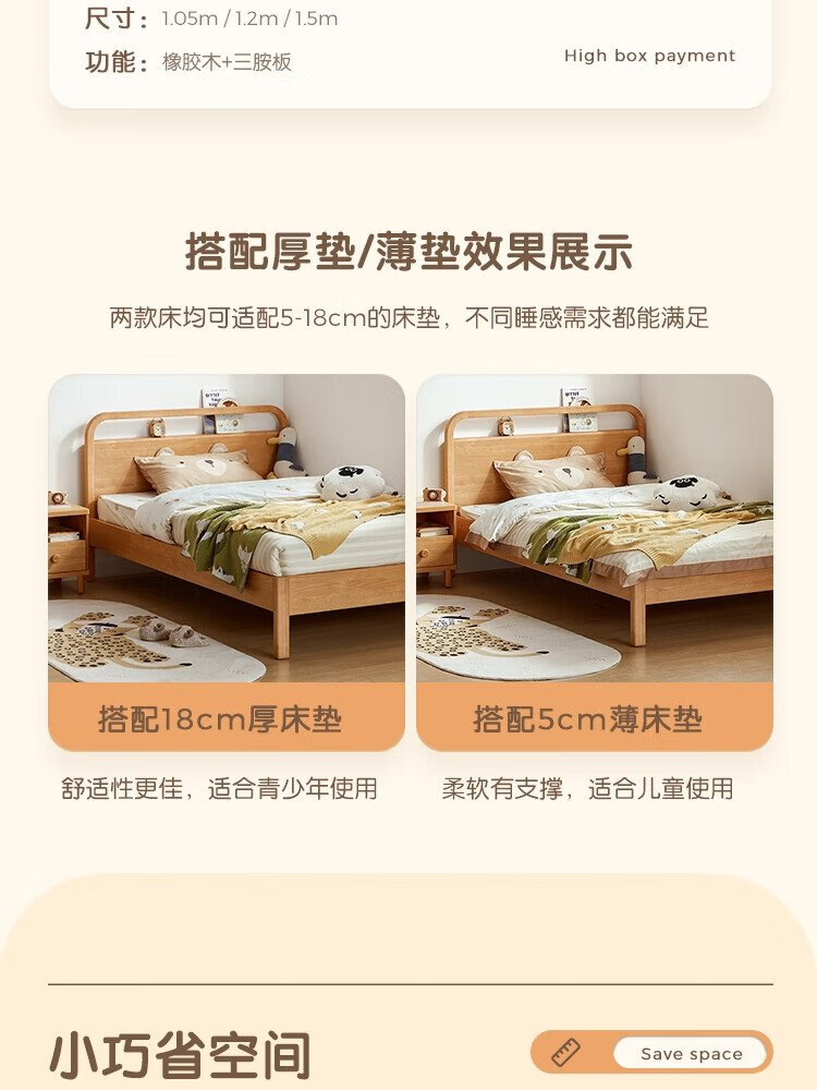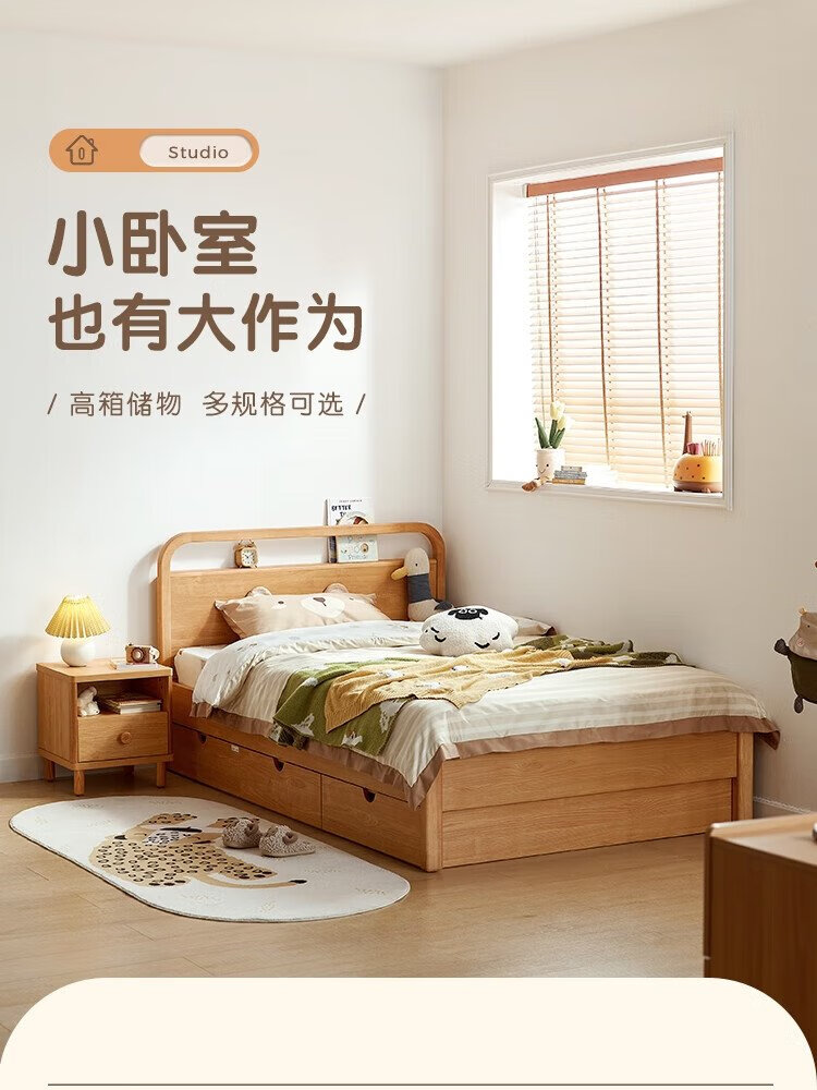 Lin's home bed children's bed girl boy bed log style bedroom small apartment single bed 1.2 meters bed KN4A